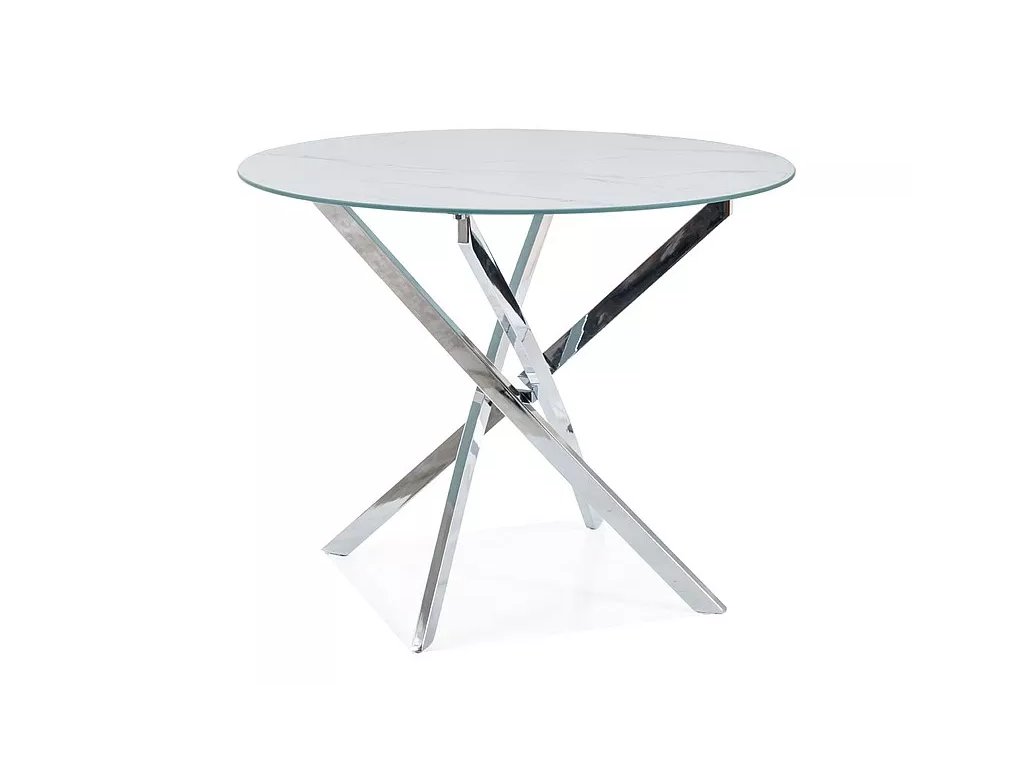 Stůl, deska: tvrzené sklo, mramorový efekt, rám: kov, barva: bílá / chrom.