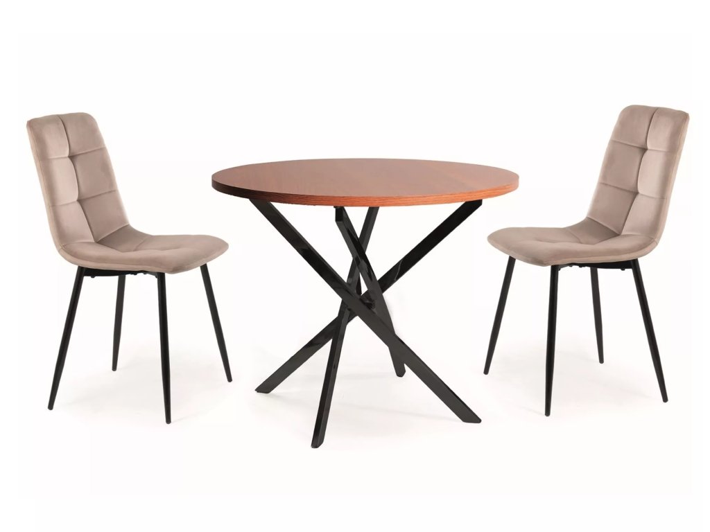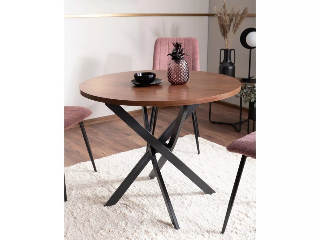 Stůl, deska: MDF + dýha, rám: kov, barva: ořech / matná černá.
