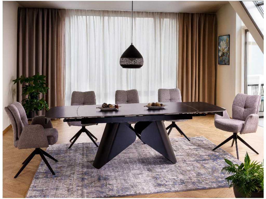 Rozkládací stůl, deska: keramika, rám: kov, barva: matná černá / matná černá.