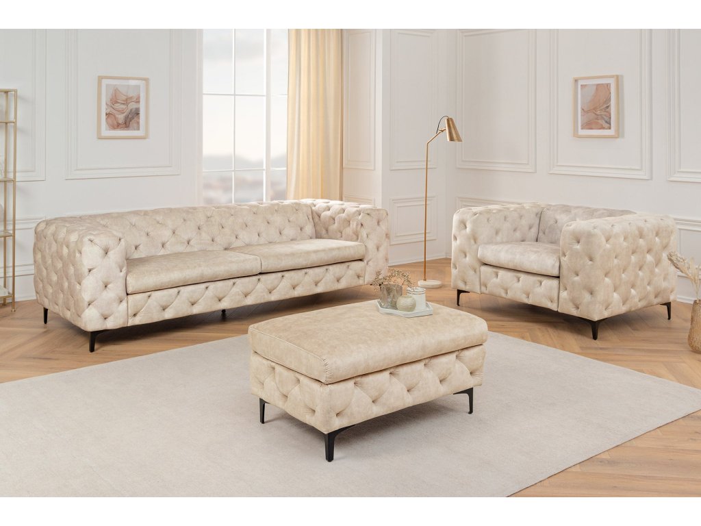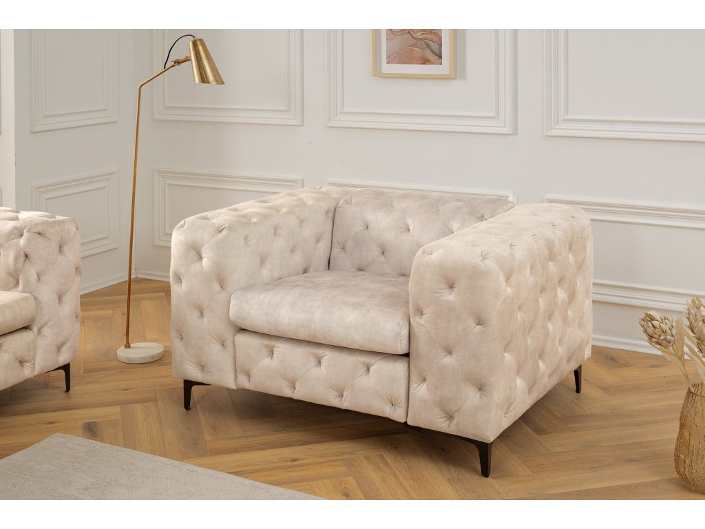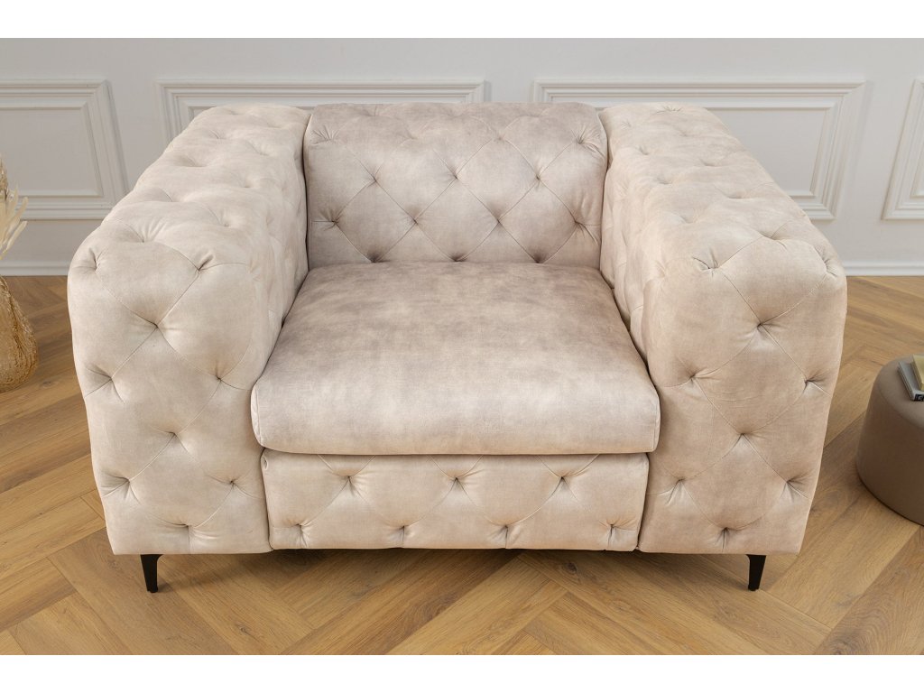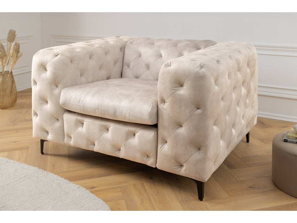 Křeslo MODERN BAROCK 120cm chesterfield imitace samet s pružinovým jádrem, šampaňská béžová