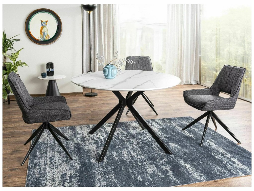 Stůl, deska: MDF + dýha, rám: kov, barva: bílý mramorový efekt / černá matná.