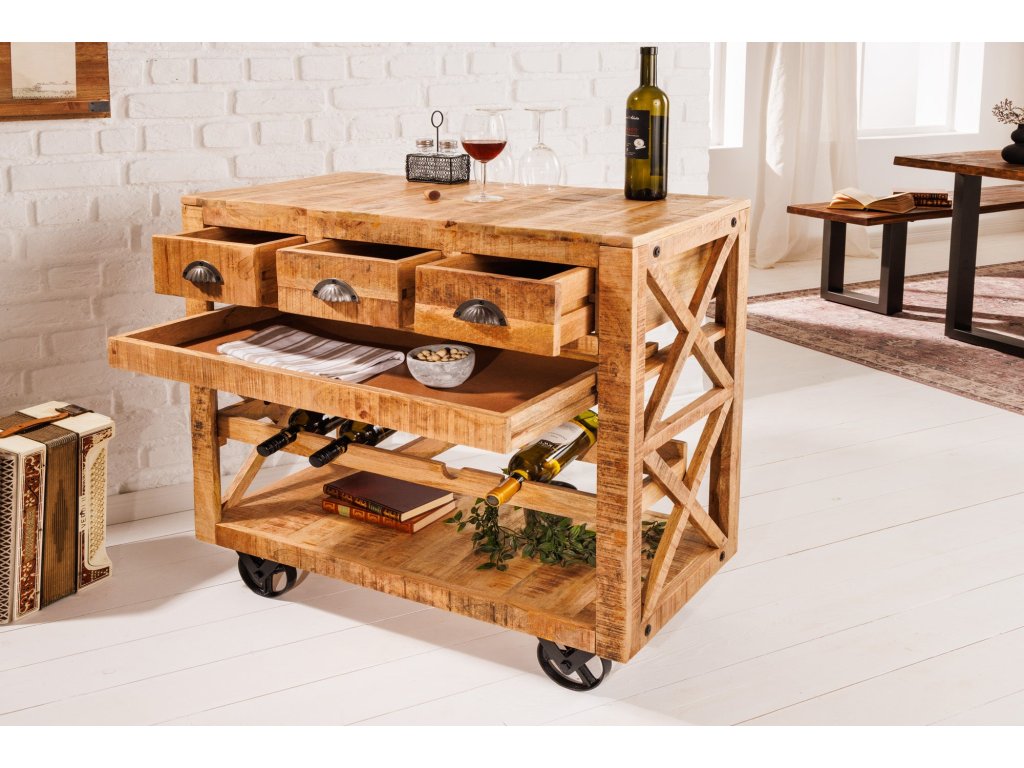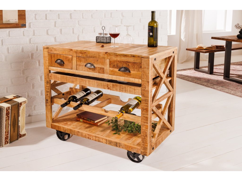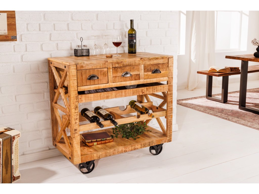 Barová skříňka BODEGA 90cm s kolečky mangové dřevo