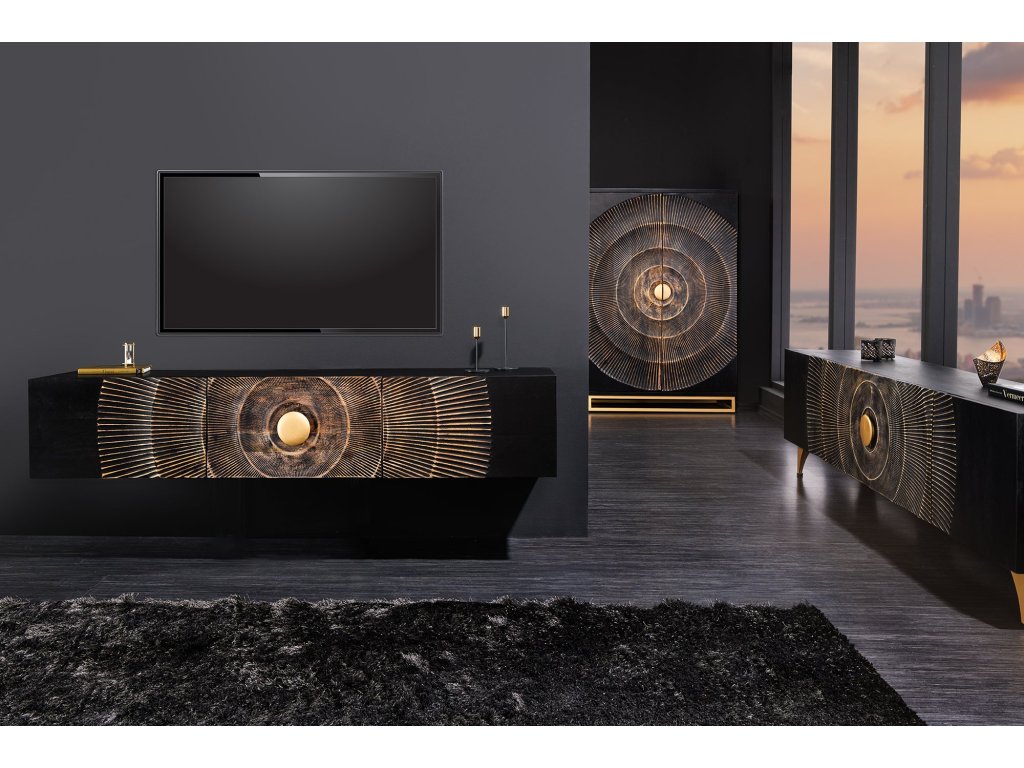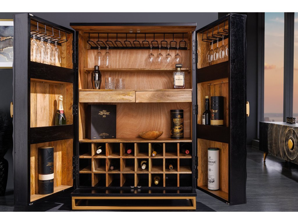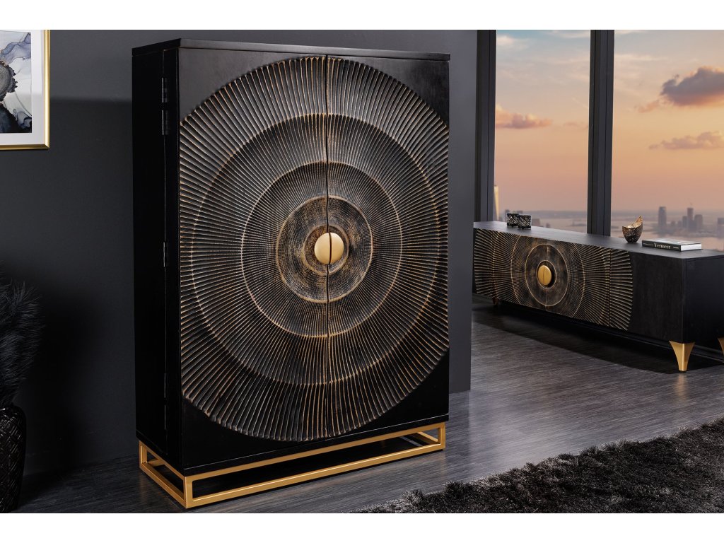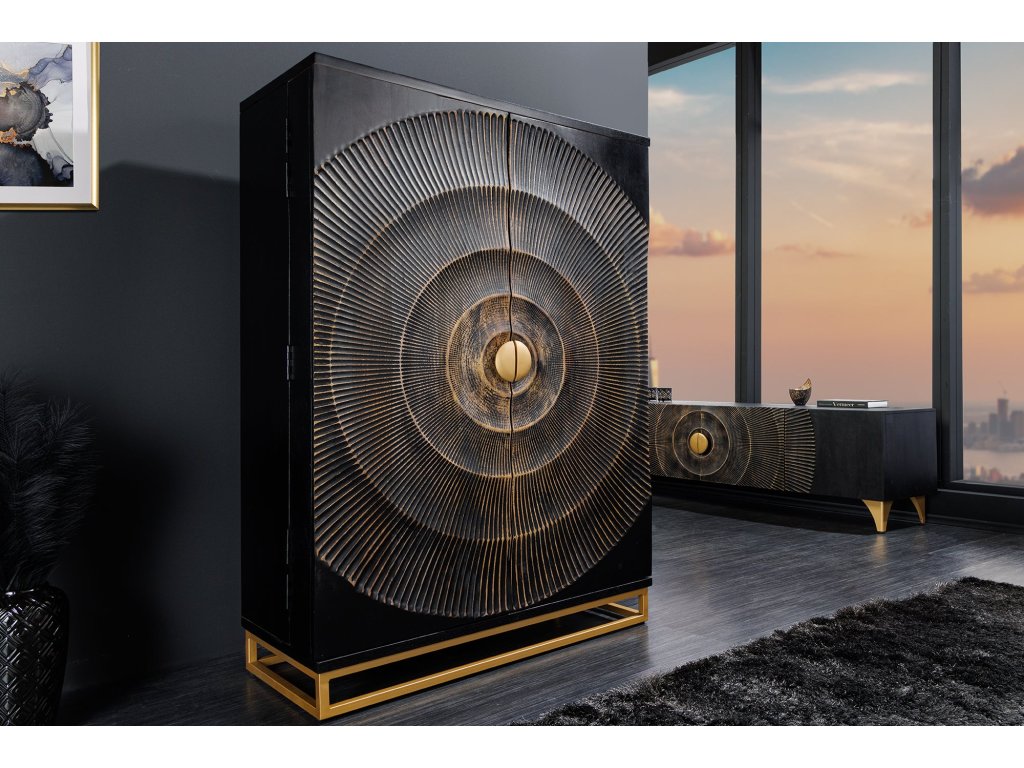 Barová skříňka GOLDEN SUNSET 140cm 3D mangovníkové dřevo černá