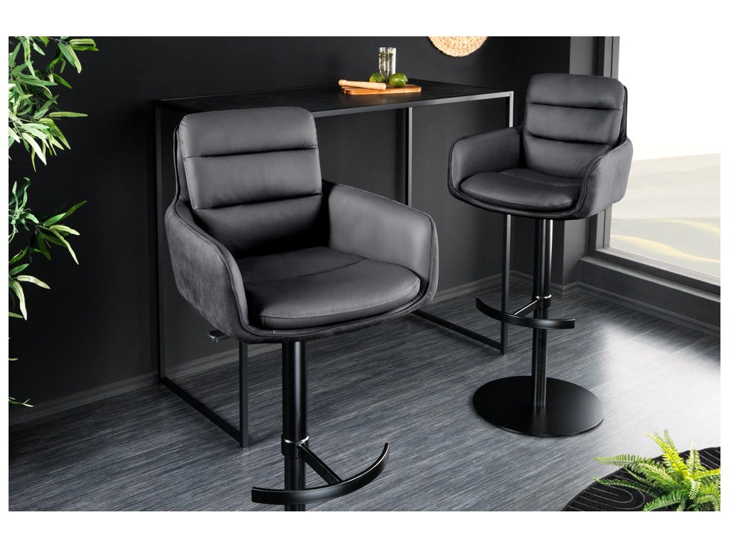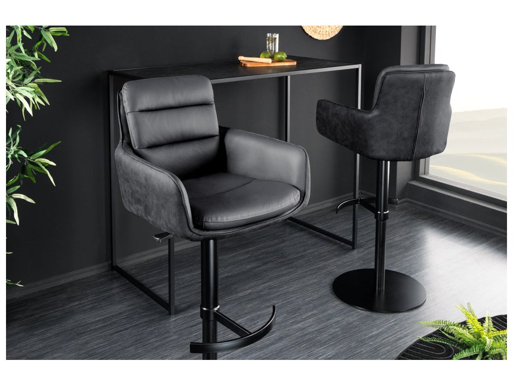 Barová židle BIG GEORGE s područkami, mikrovlákno, kůže, antracit, otočná, výškově nastavitelná