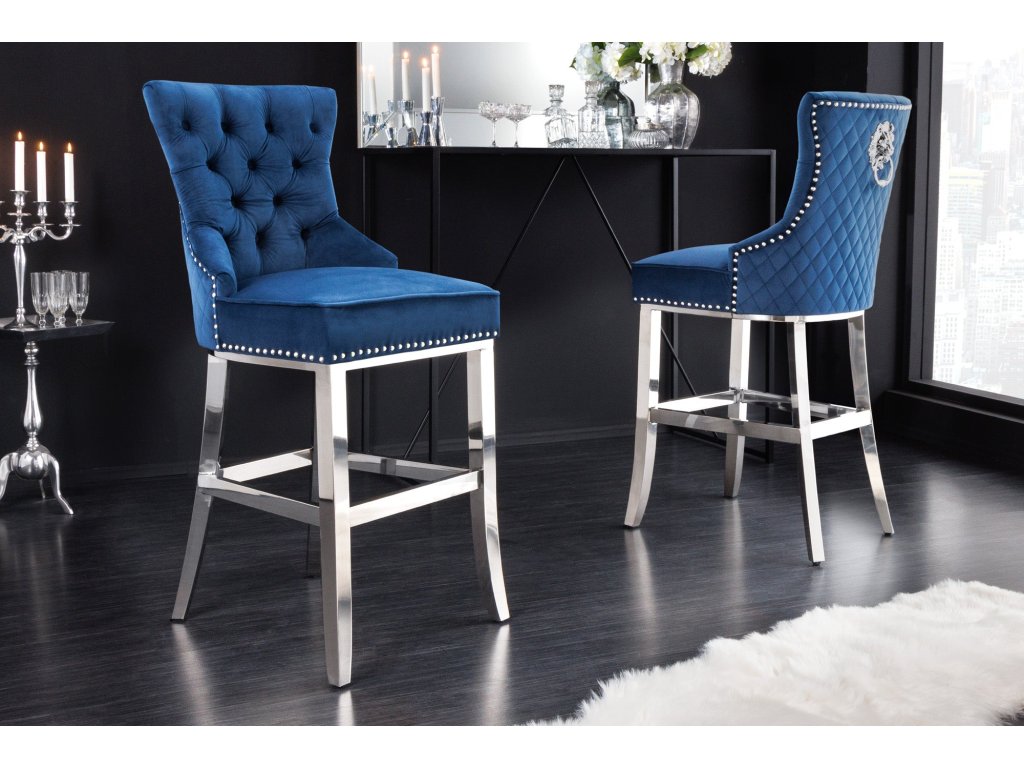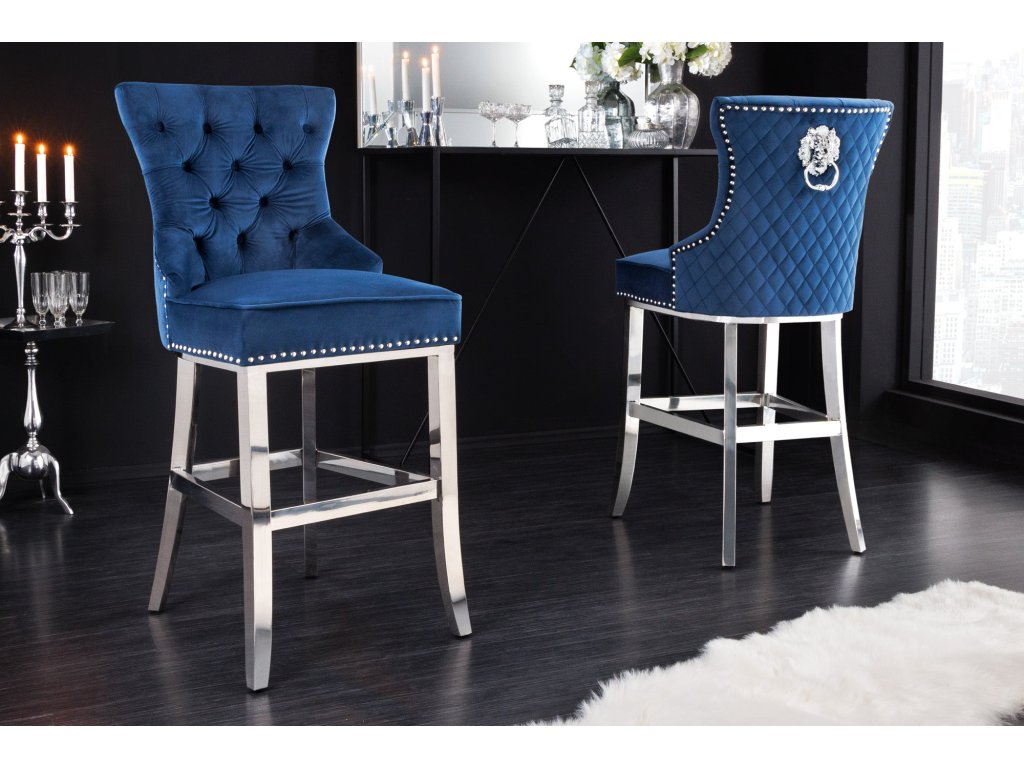 Barová židle CASTLE DELUXE 74cm se lví hlavou sametově šedá