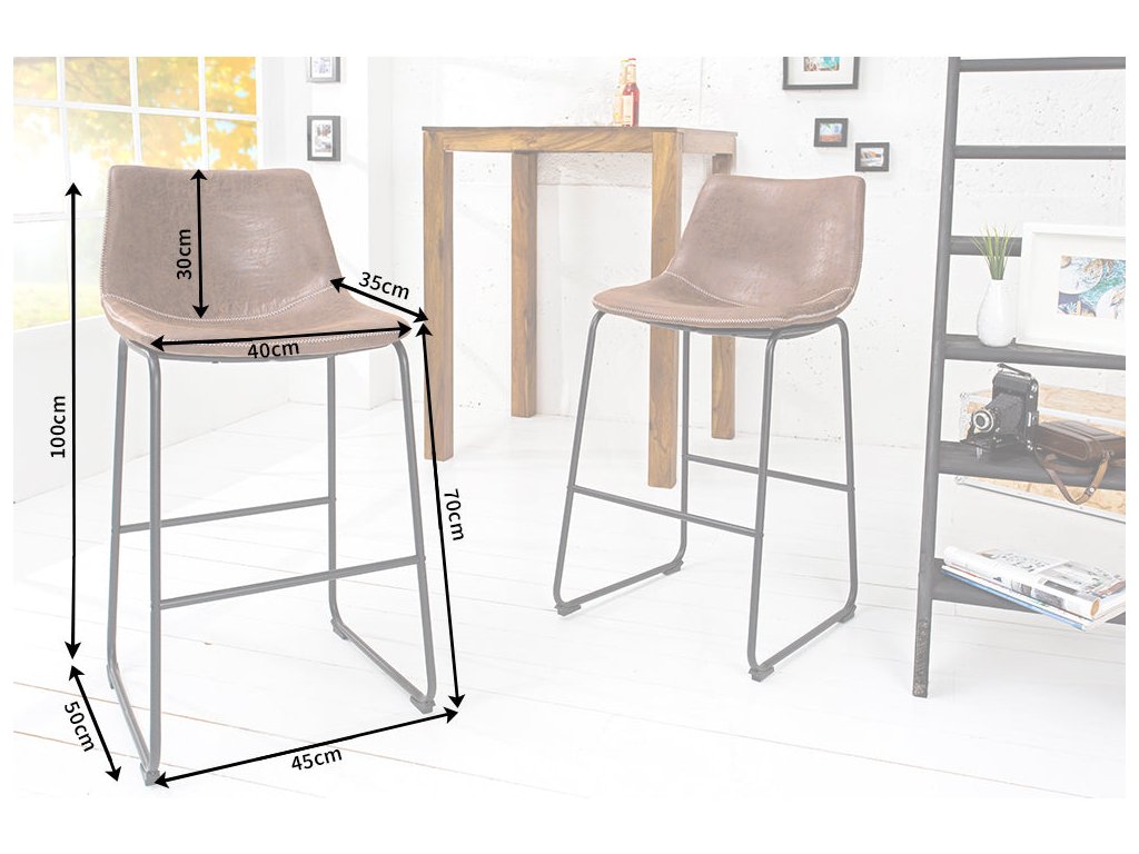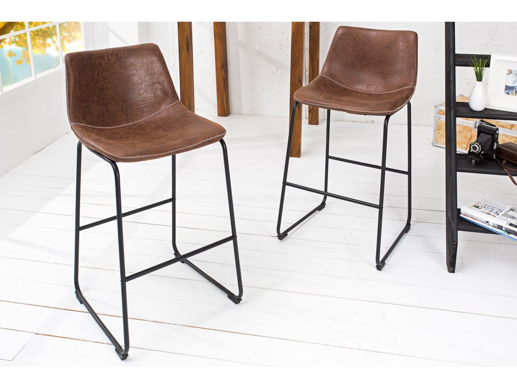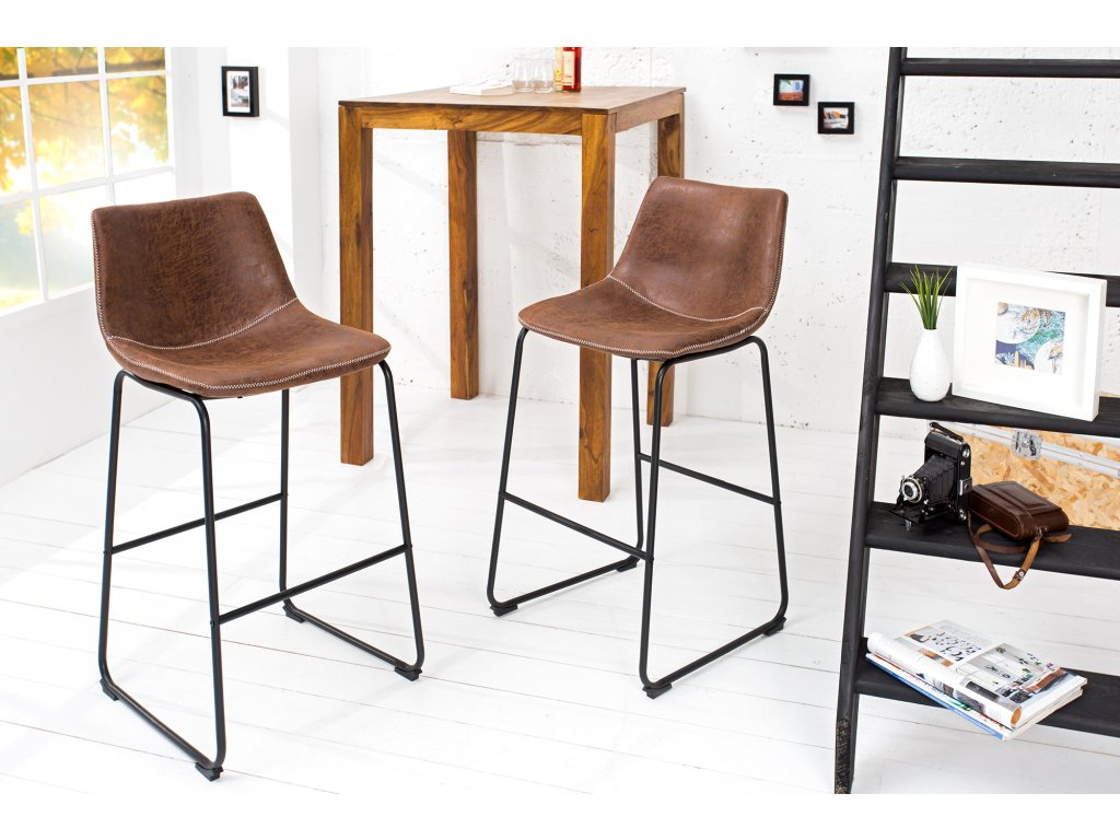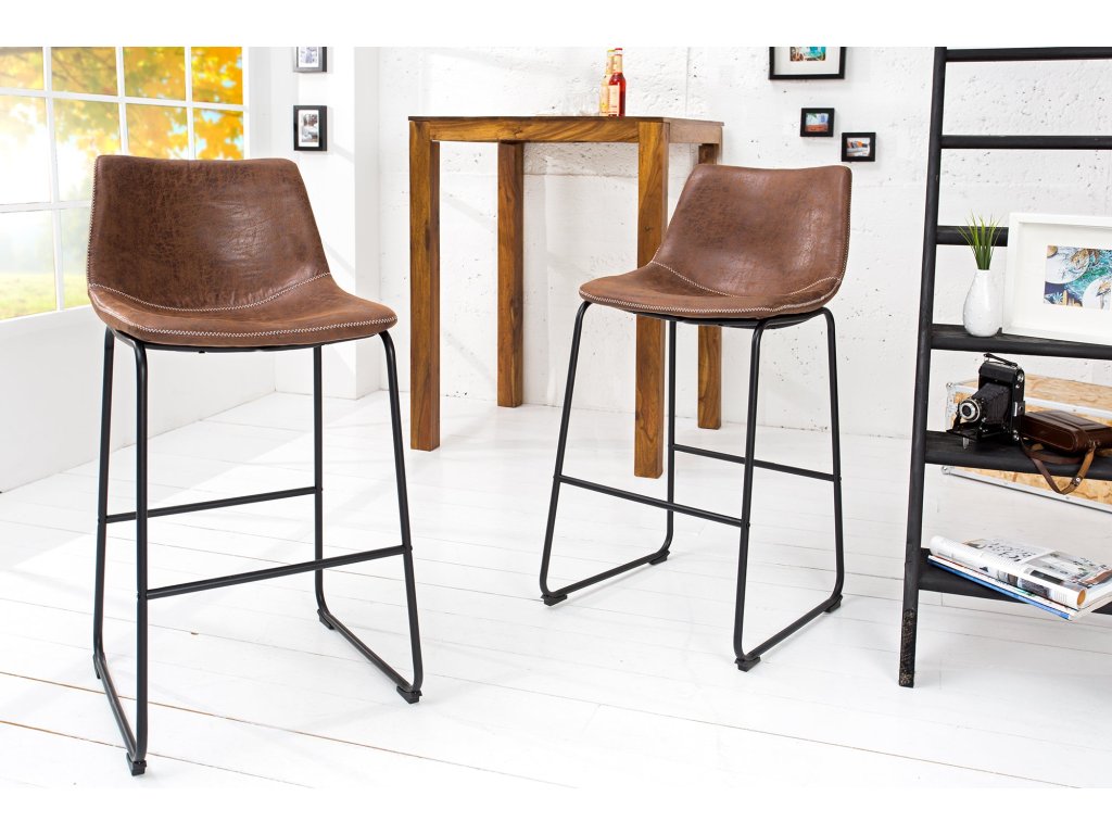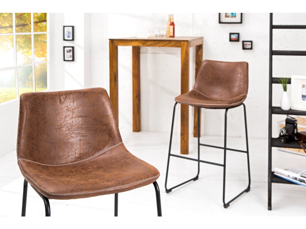 Barová židle DJANGO z mikrovlákna vintage hnědá s černými železnými nohami