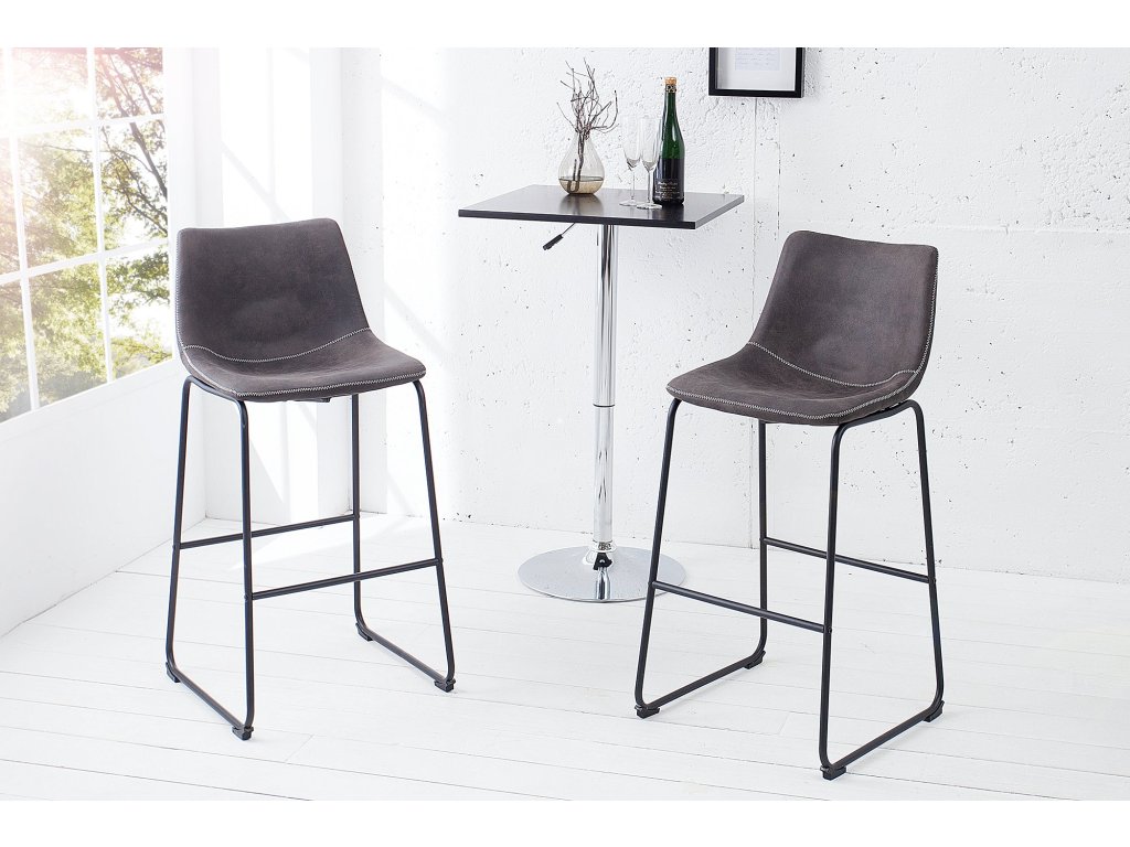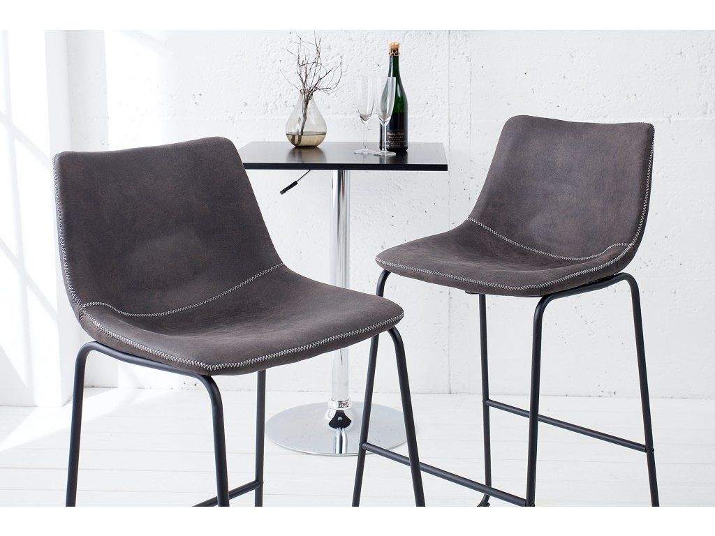 Barová židle DJANGO z mikrovlákna vintage šedá s černými železnými nohami