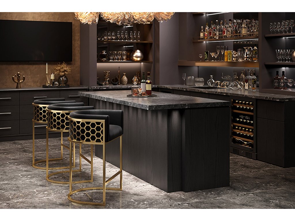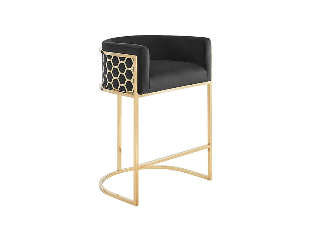 Barová židle ELEGANCE sametově černá se zlatou nerezovou konstrukcí