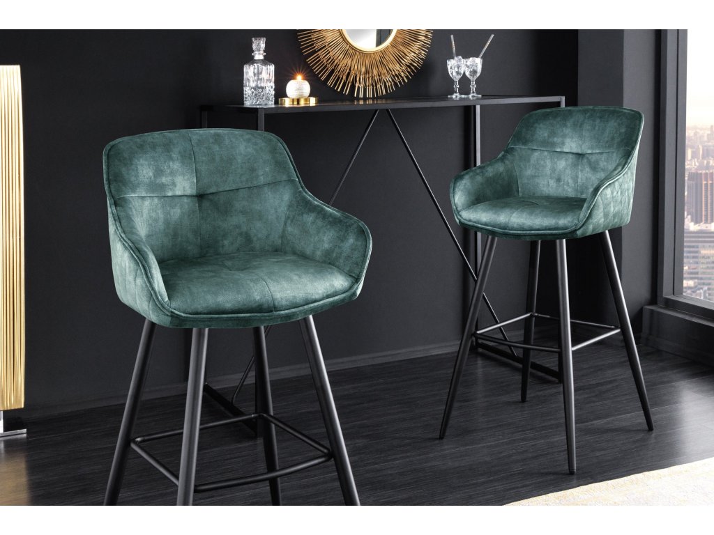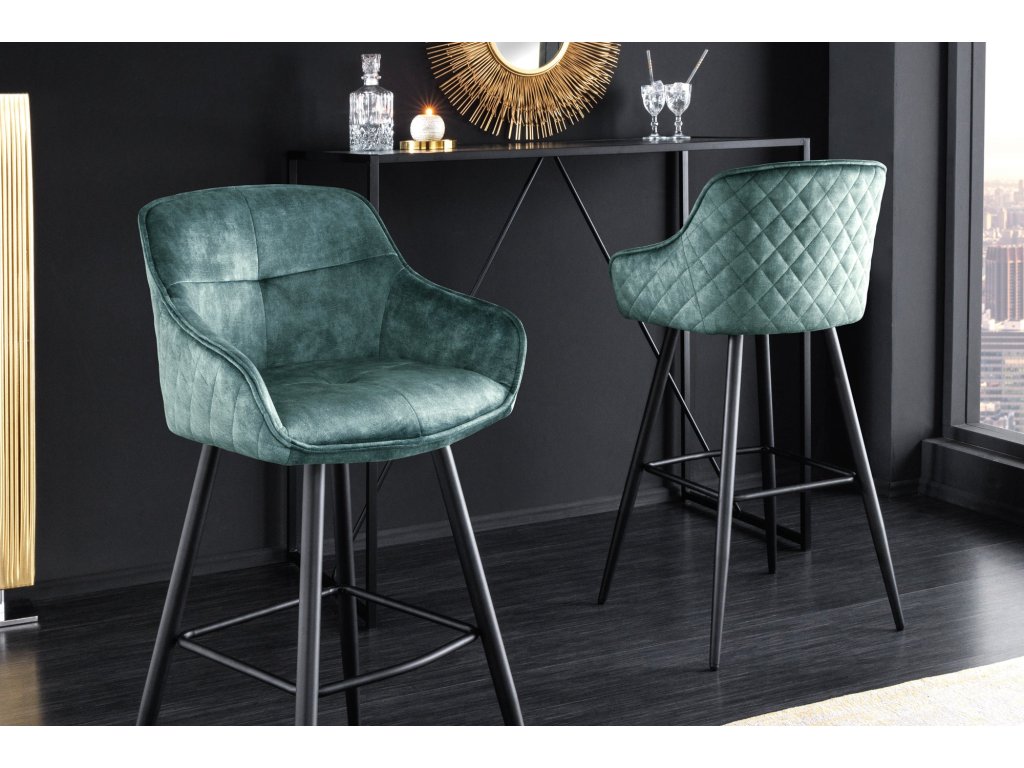Barová židle EUPHORIA 74cm sametově modrozelená