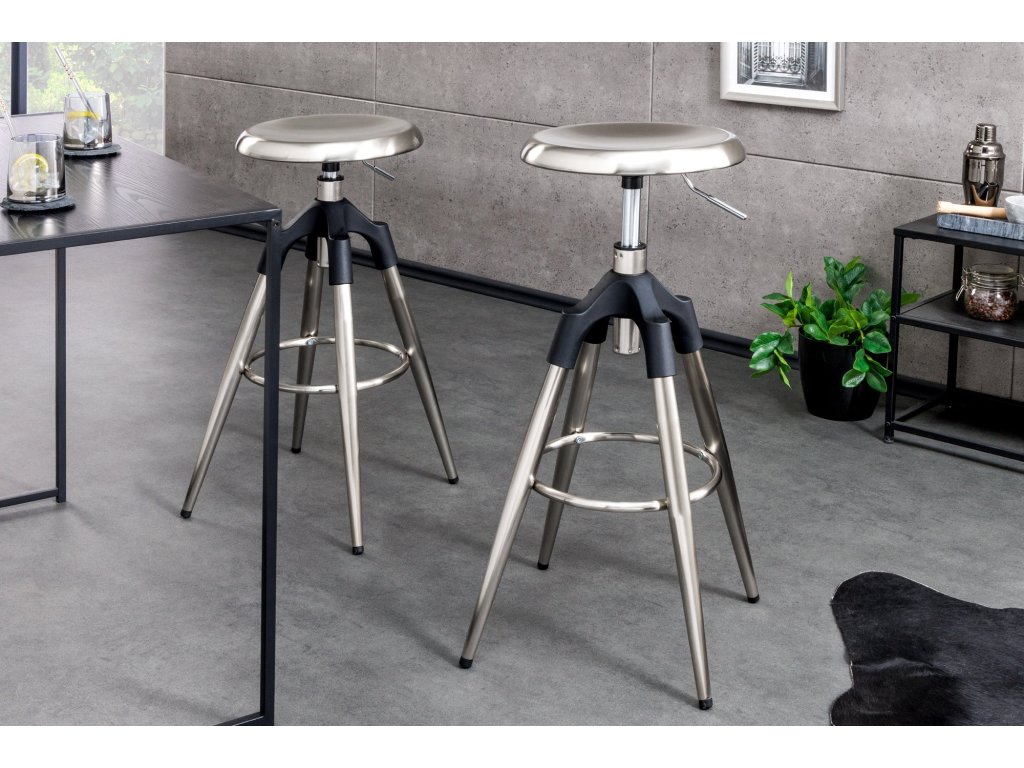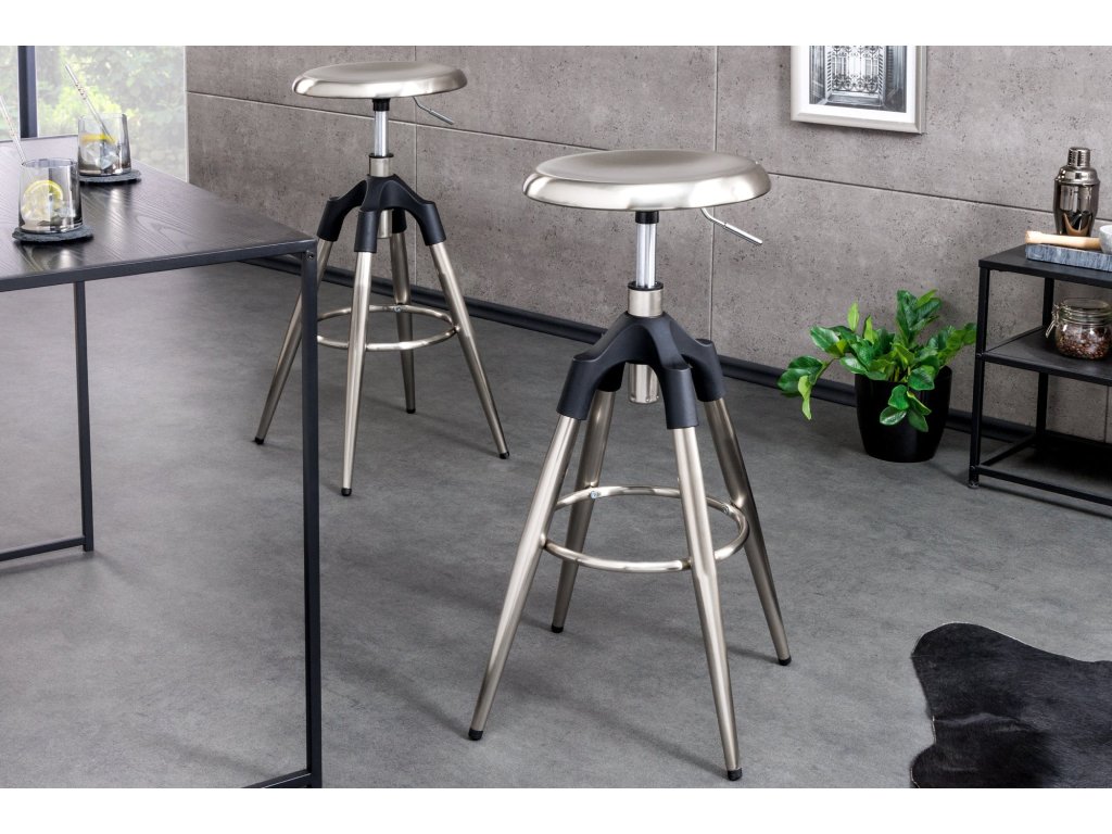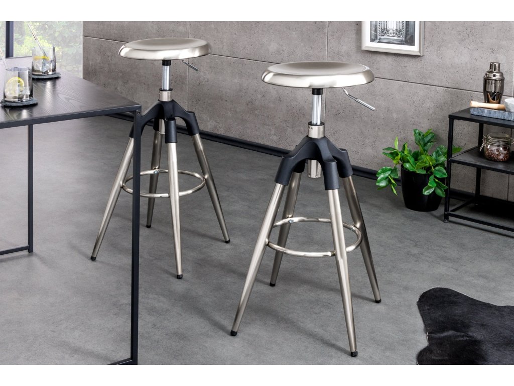 Barová židle INDUSTRIAL 73-81cm broušený kov stříbrná