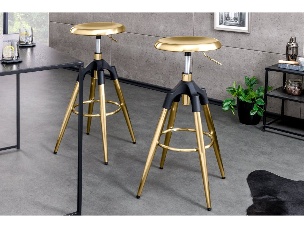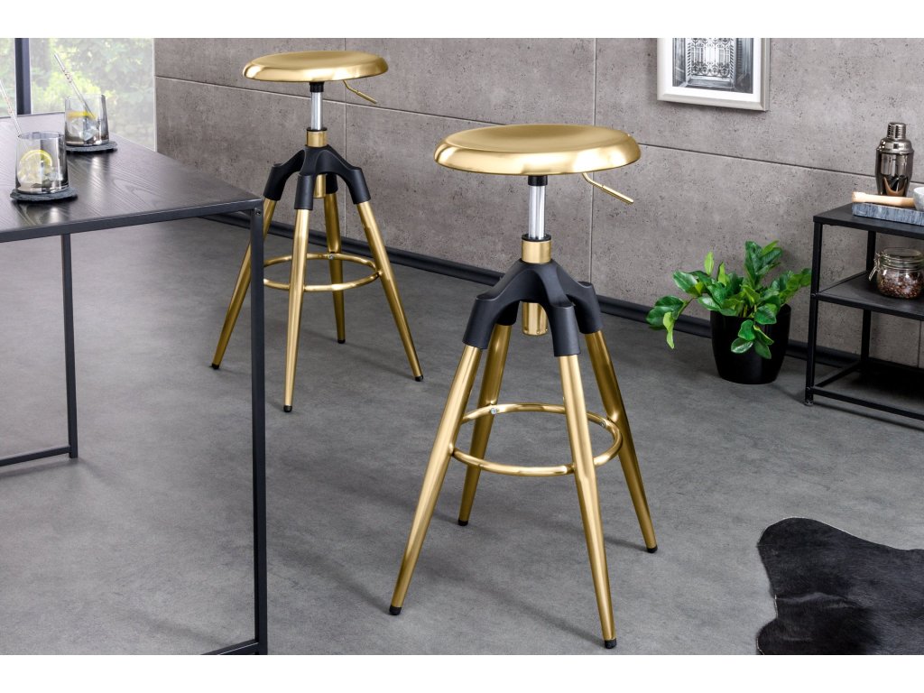 Barová židle INDUSTRIAL 73-81cm broušený kov zlatý