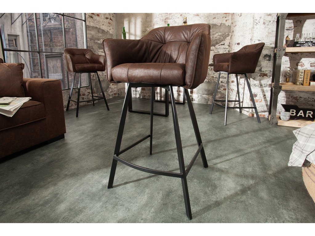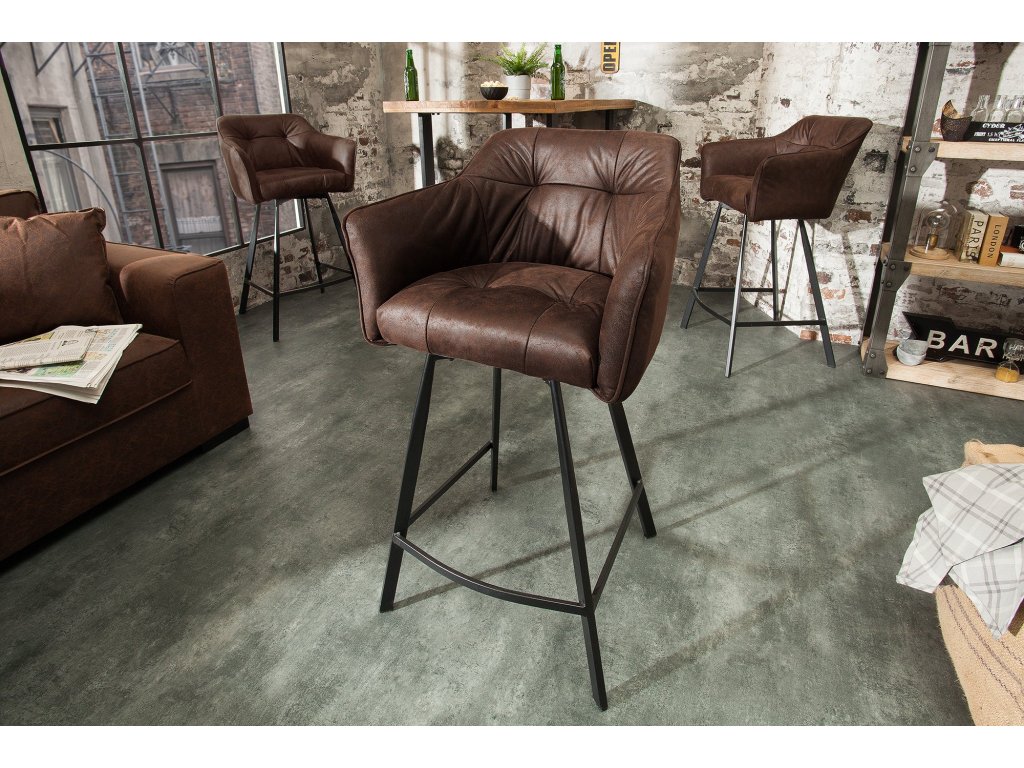 Barová židle LOFT s područkami z mikrovlákna starohnědá