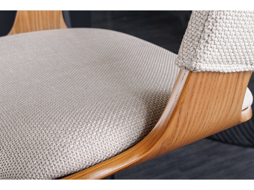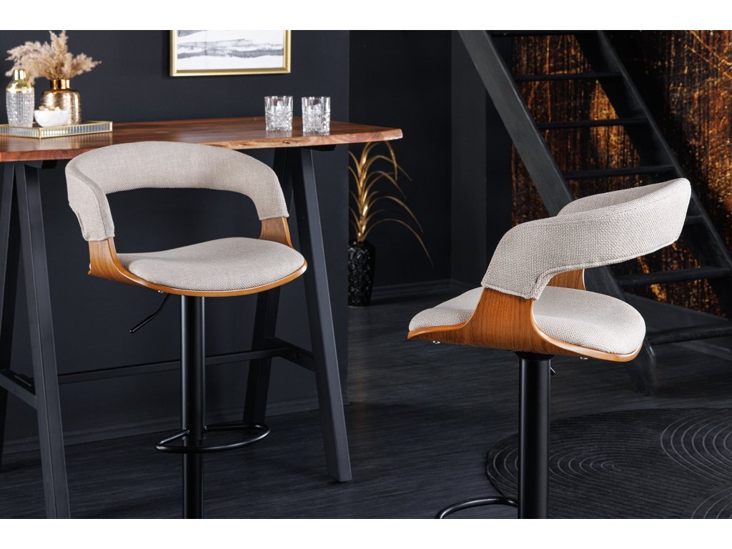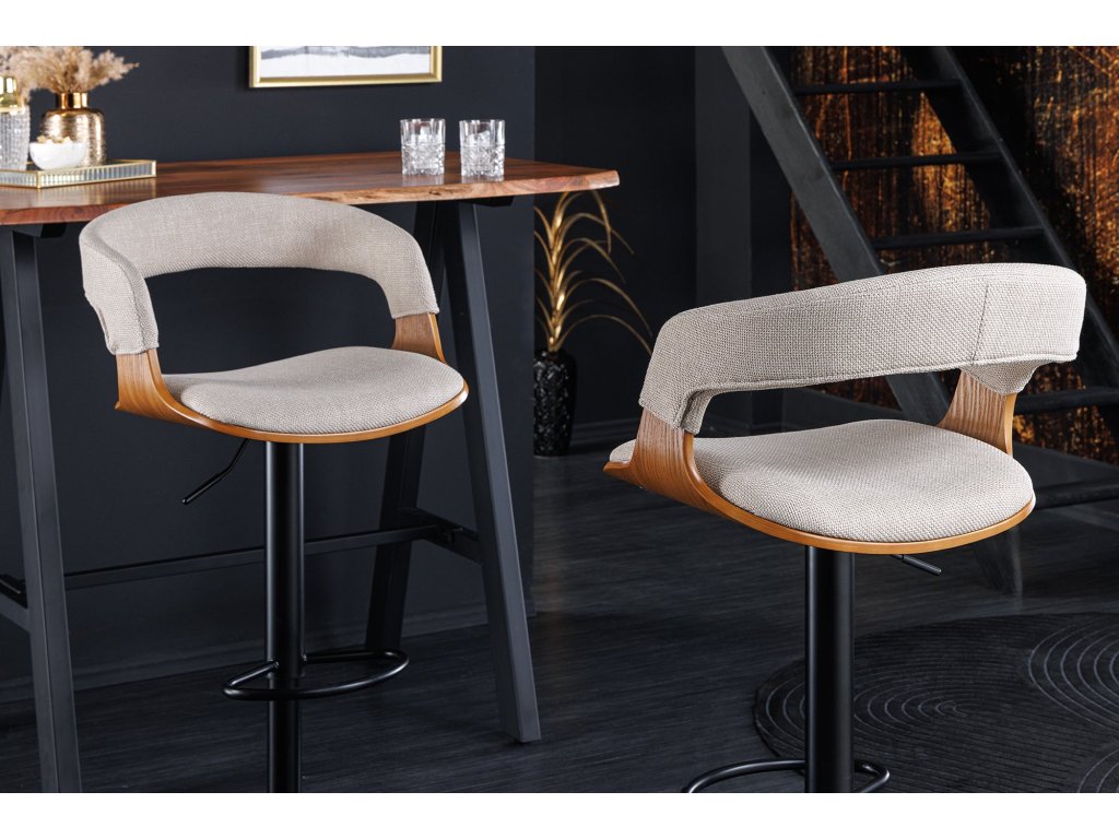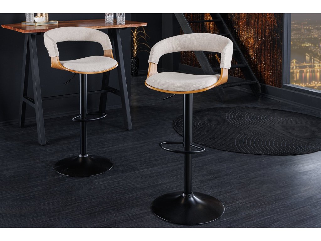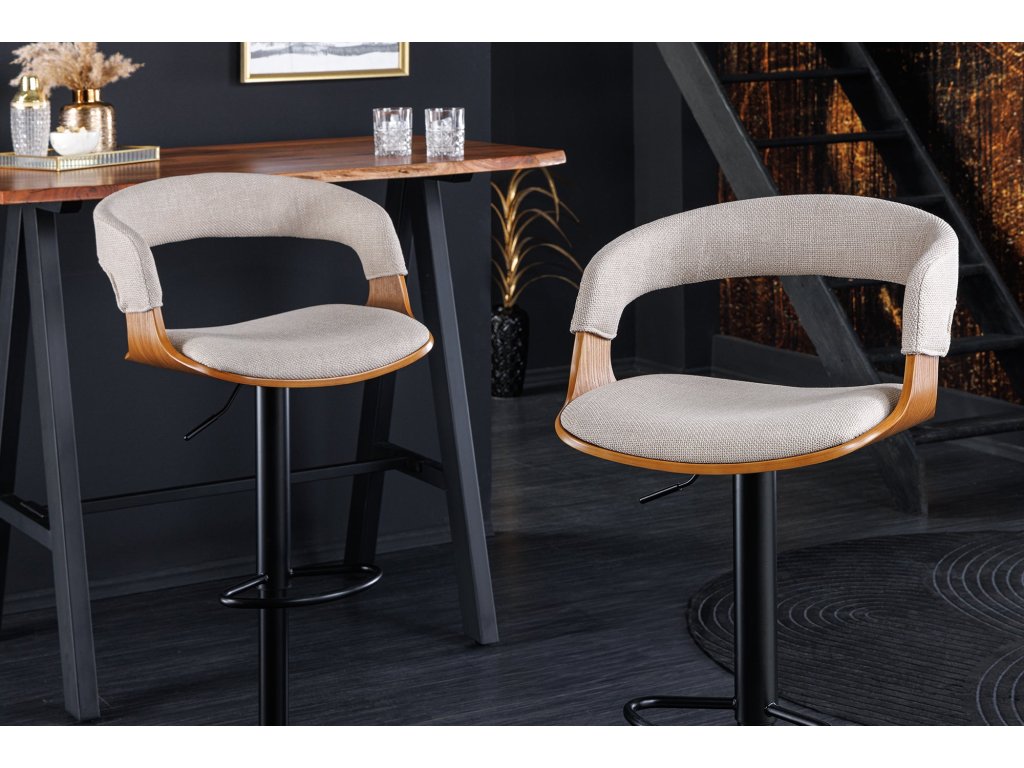 Barová židle MANHATTAN 64-85cm otočná texturovaná látka béžová a jasanové dřevo