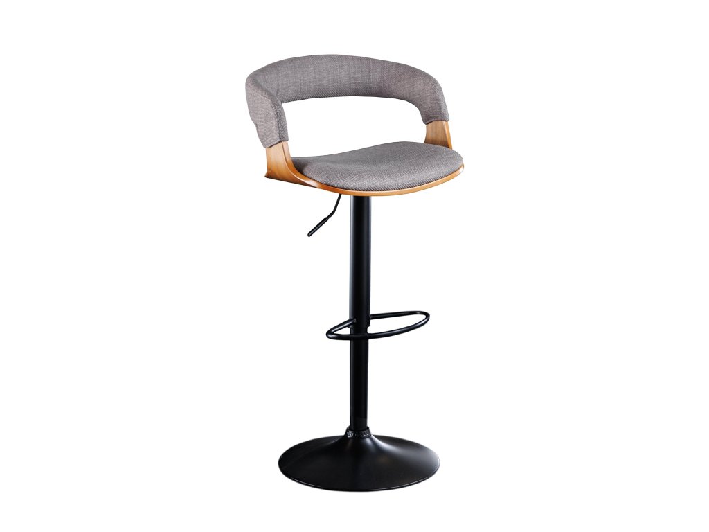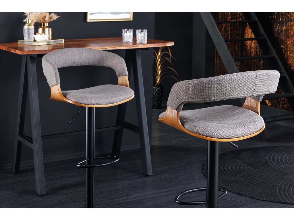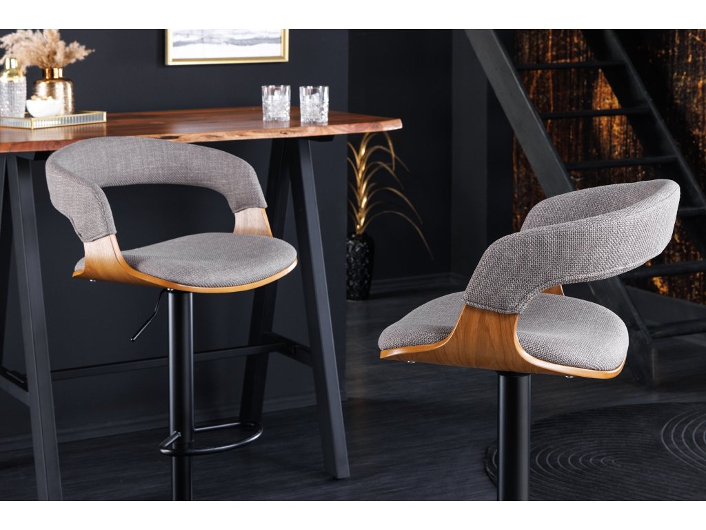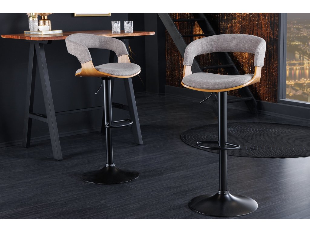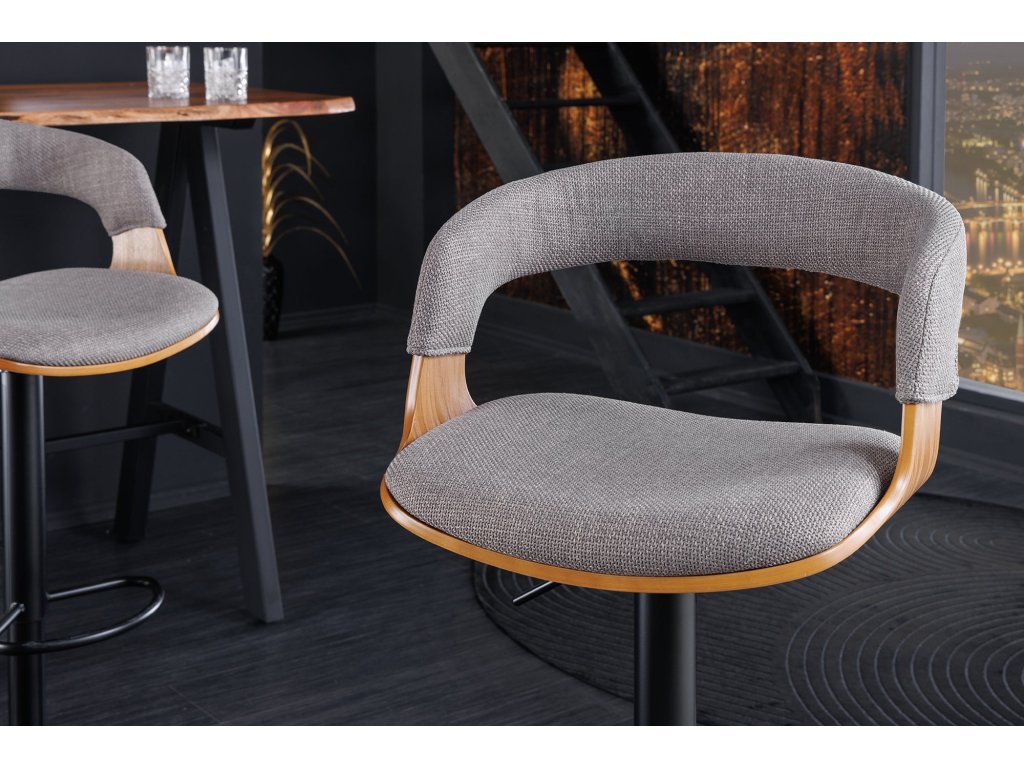 Barová židle MANHATTAN 64-85cm otočná texturovaná látka šedá a jasanové dřevo