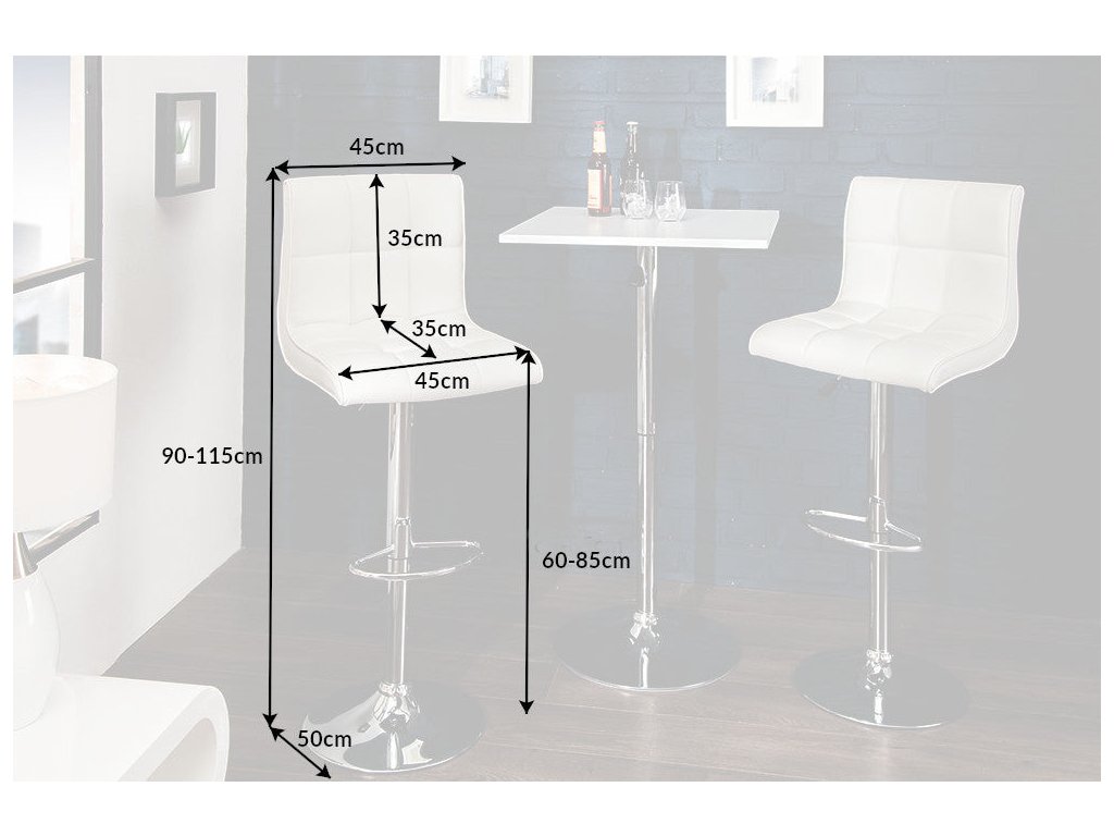 Barová židle MODENA 90-115cm syntetická kůže bílá