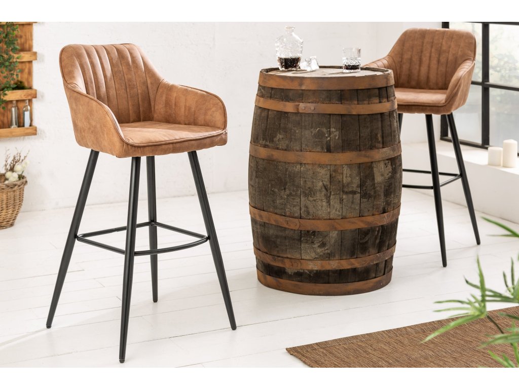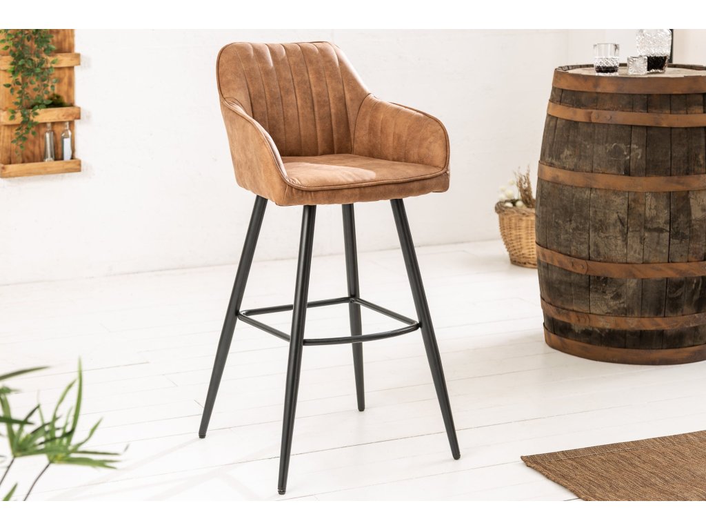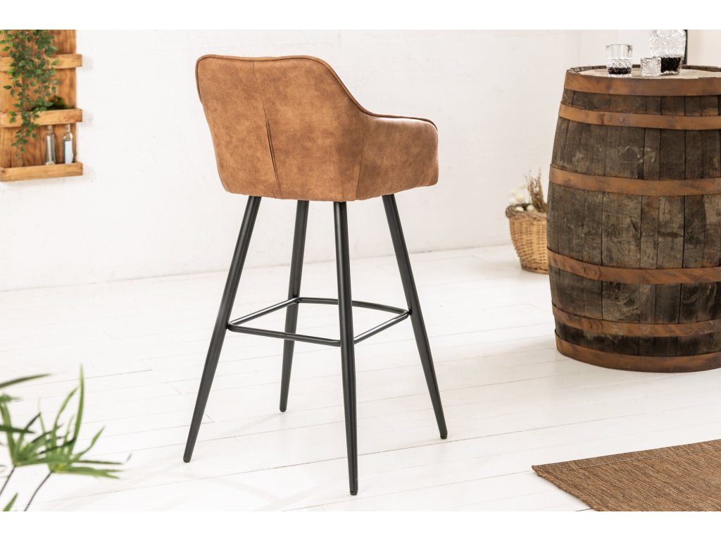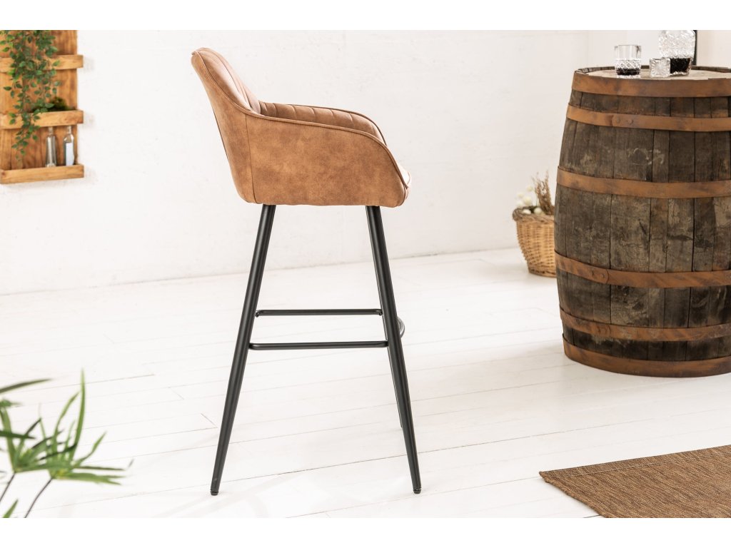 Barová židle TURIN z mikrovlákna vintage hnědá s prošíváním