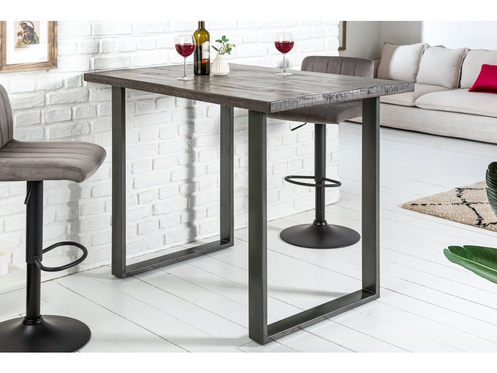 Barový stůl IRON CRAFT 120cm mango šedý industriální styl