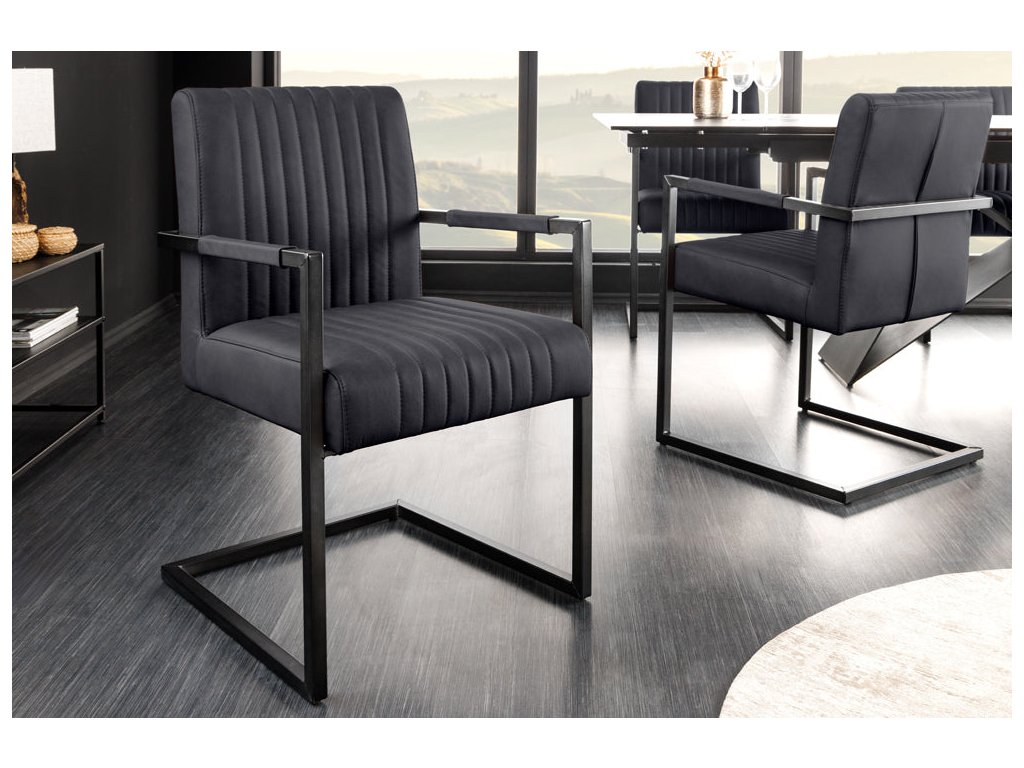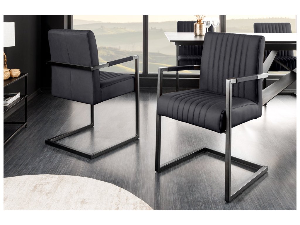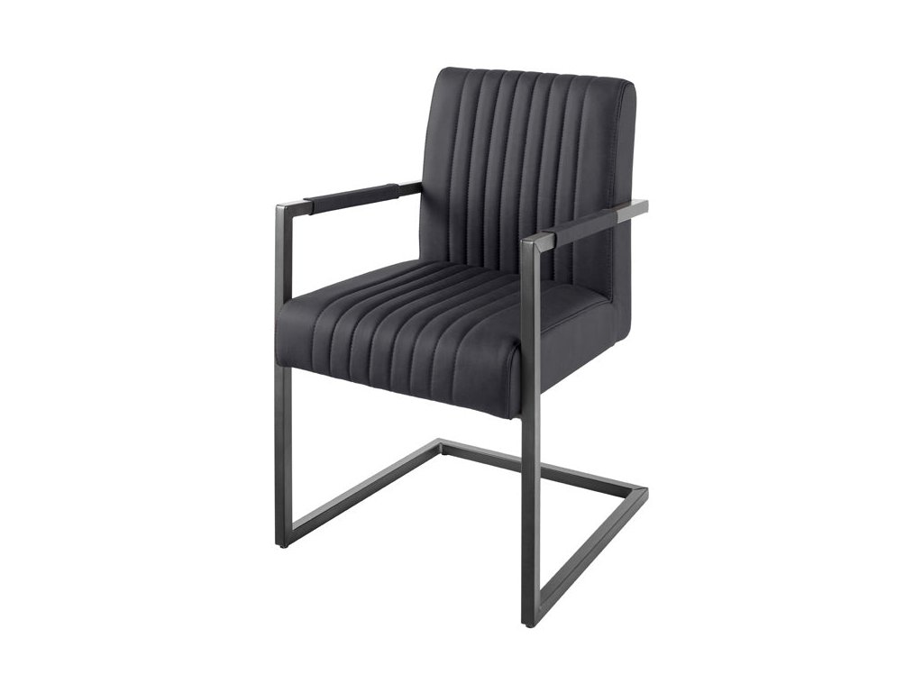 Konzolová židle BIG ASTON s područkami, pružinové jádro, černé, kovové nohy, kůže, černá