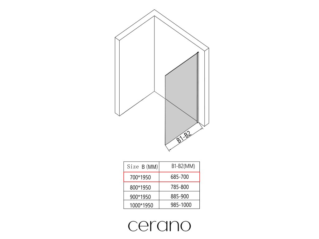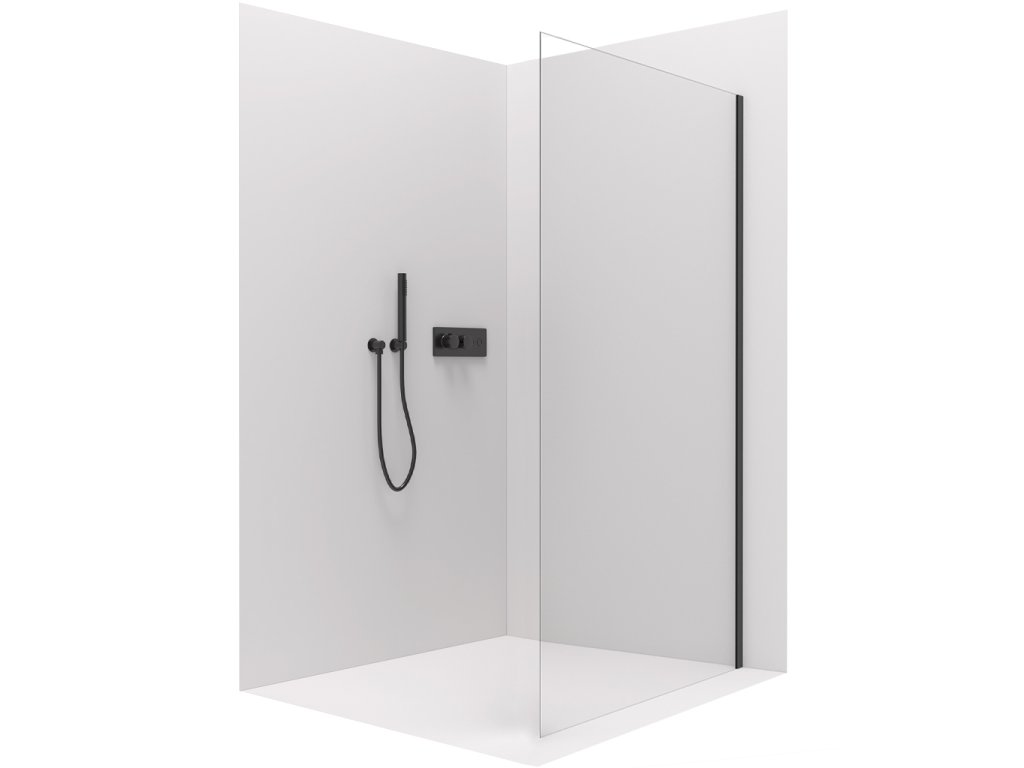 CERANO - Boční stěna Orlano L/P - 5 mm - černá matná, transparentní sklo - 70x195 cm - ROZBALENO