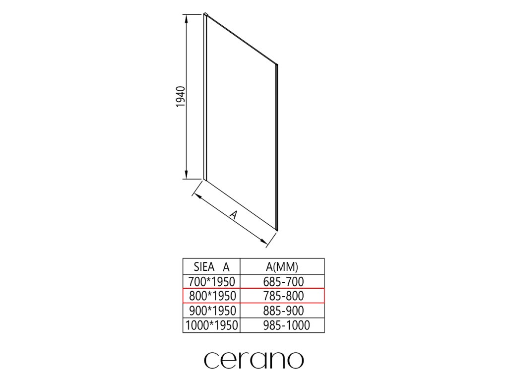 CERANO - Boční stěna Porte L/P - 8 mm - chrom, transparentní sklo - 80x195 cm