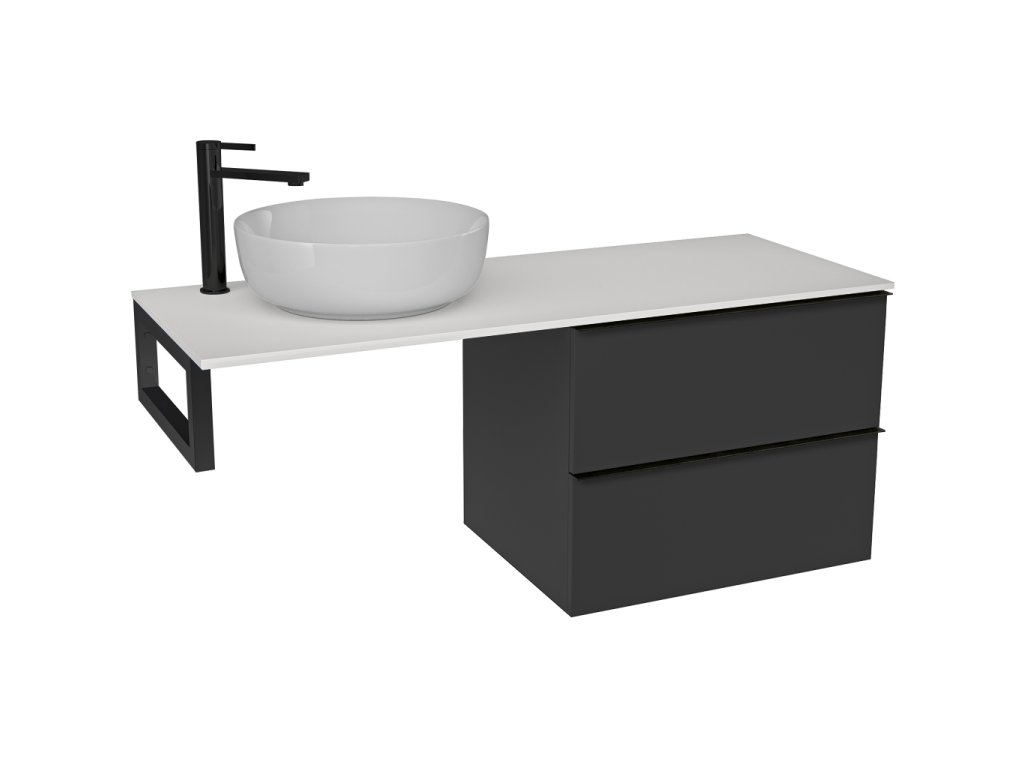 CERANO - Deska pod umyvadlo z litého mramoru Elanys - 140x46,5x1,2 cm - skříňka Velora 69 cm - černá matná, černá úchytka - konzole černá