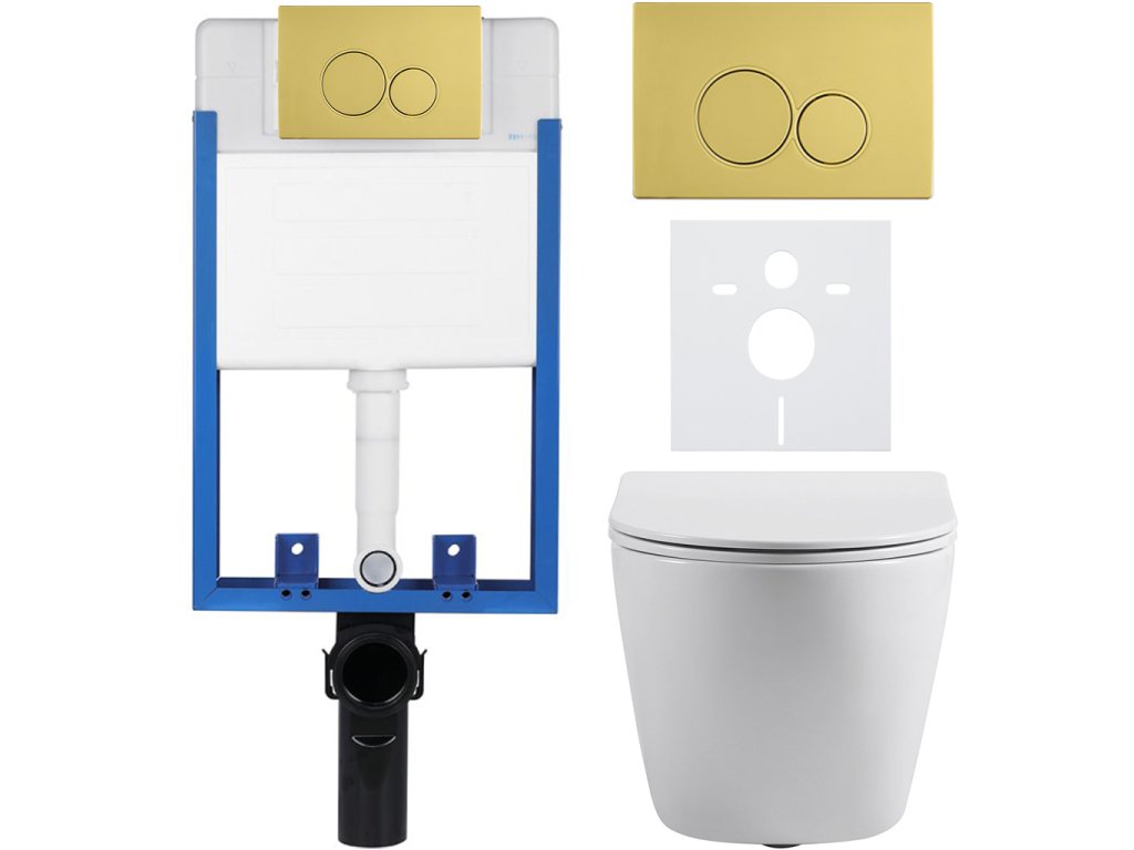 CERANO - Kompletní podomítkový WC set Lite/Cesso - bílá lesklá - WC tlačítko Duo. zlatá - k zazdění - 49x36 cm