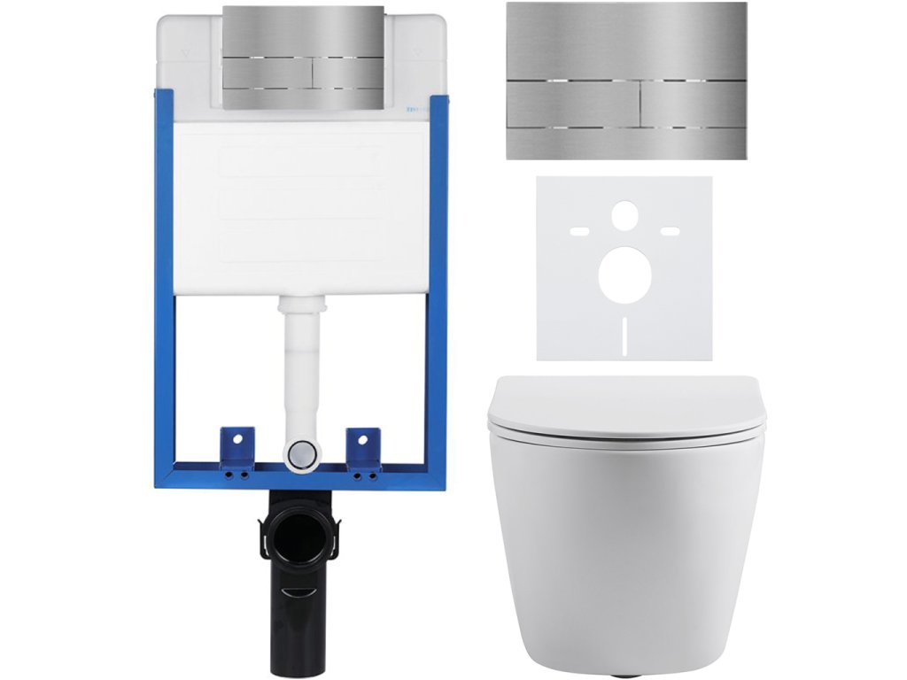 CERANO - Kompletní podomítkový WC set Lite/Cesso - bílá matná - WC tlačítko Line, nerez - k zazdění - 49x36 cm