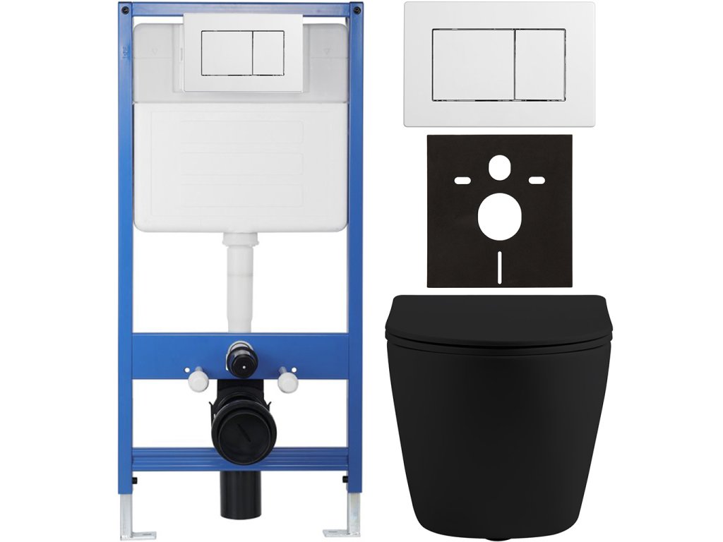 CERANO - Kompletní podomítkový WC set Lite/Cesso - černá matná - WC tlačítko Classic, bílé - předstěnová instalace/sádrokarton - 49x36 cm
