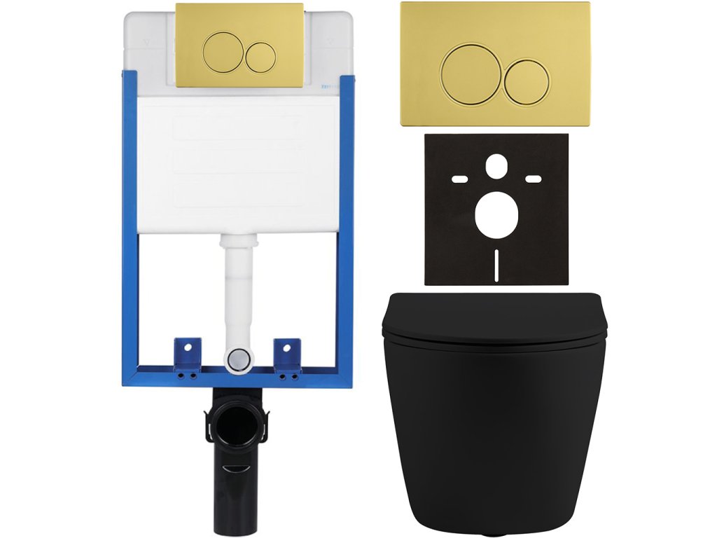 CERANO - Kompletní podomítkový WC set Lite/Cesso - černá matná - WC tlačítko Duo. zlatá - k zazdění - 49x36 cm