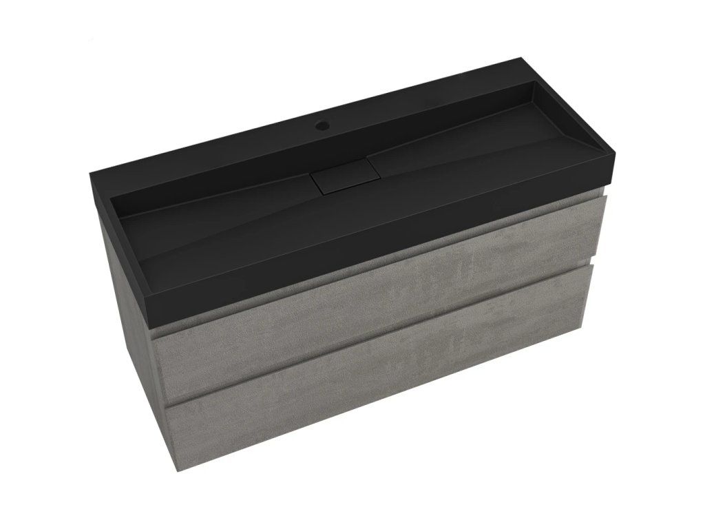 CERANO - Koupelnová skříňka Carole - betonově šedá + umyvadlo z lit. mramoru Vita - otvor - černá matná - 100x58x46 cm