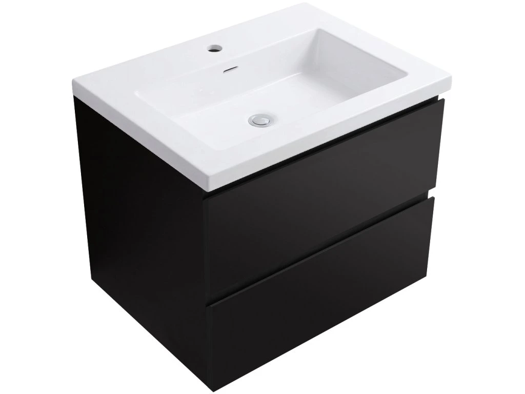 CERANO - Koupelnová skříňka Carole - černá matná + umyvadlo z lit. Mramoru Ovo - bílá lesklá - 71x49,5x46,5 cm