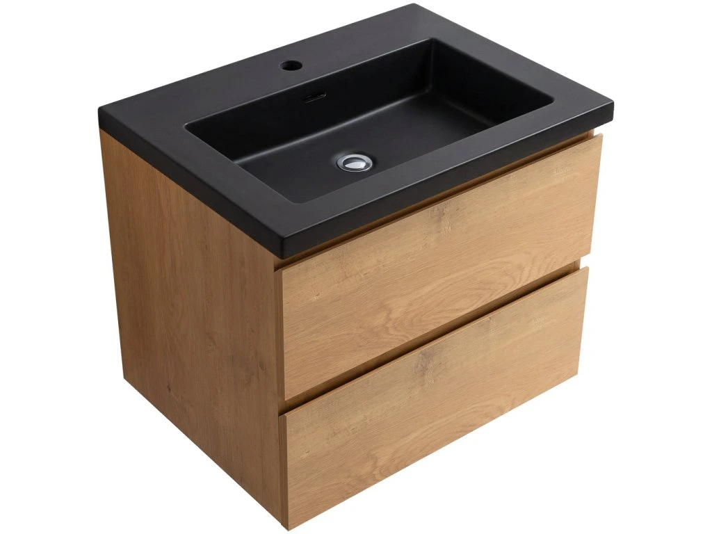 CERANO - Koupelnová skříňka Carole - dub medový + umyvadlo z lit. Mramoru Ovo - černá matná - 71x49,5x46,5 cm