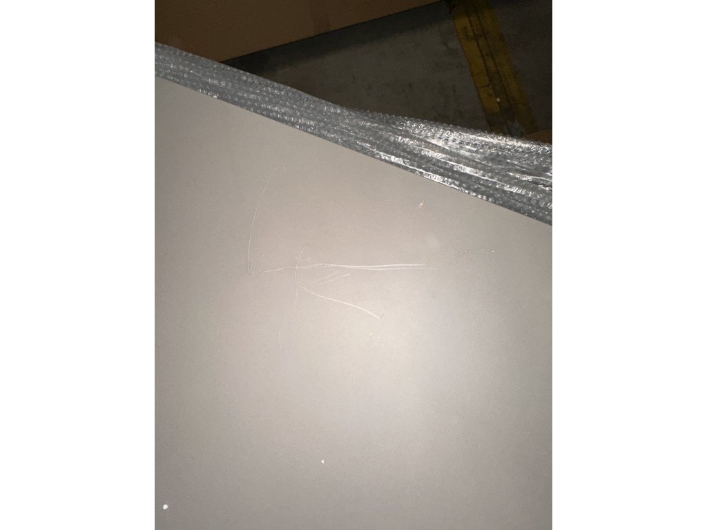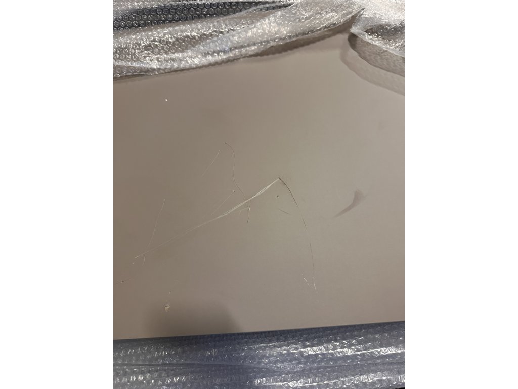 Skříňka má ze spodní strany viditelnou vadu povrchové úpravy (nerovnoměrné, vadné lakování) a drobné škrábance.