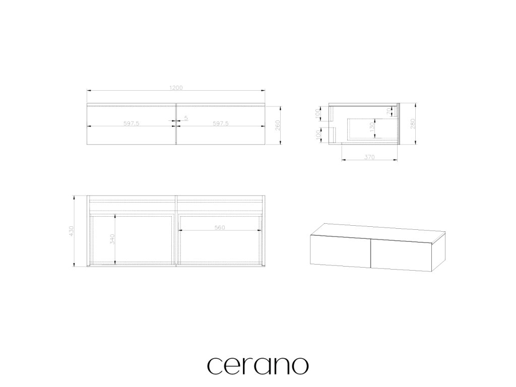 CERANO - Koupelnová skříňka pod nástěnné umyvadlo/doplňková Noira - šedá matná - 120x43x28 cm - 2. jakost