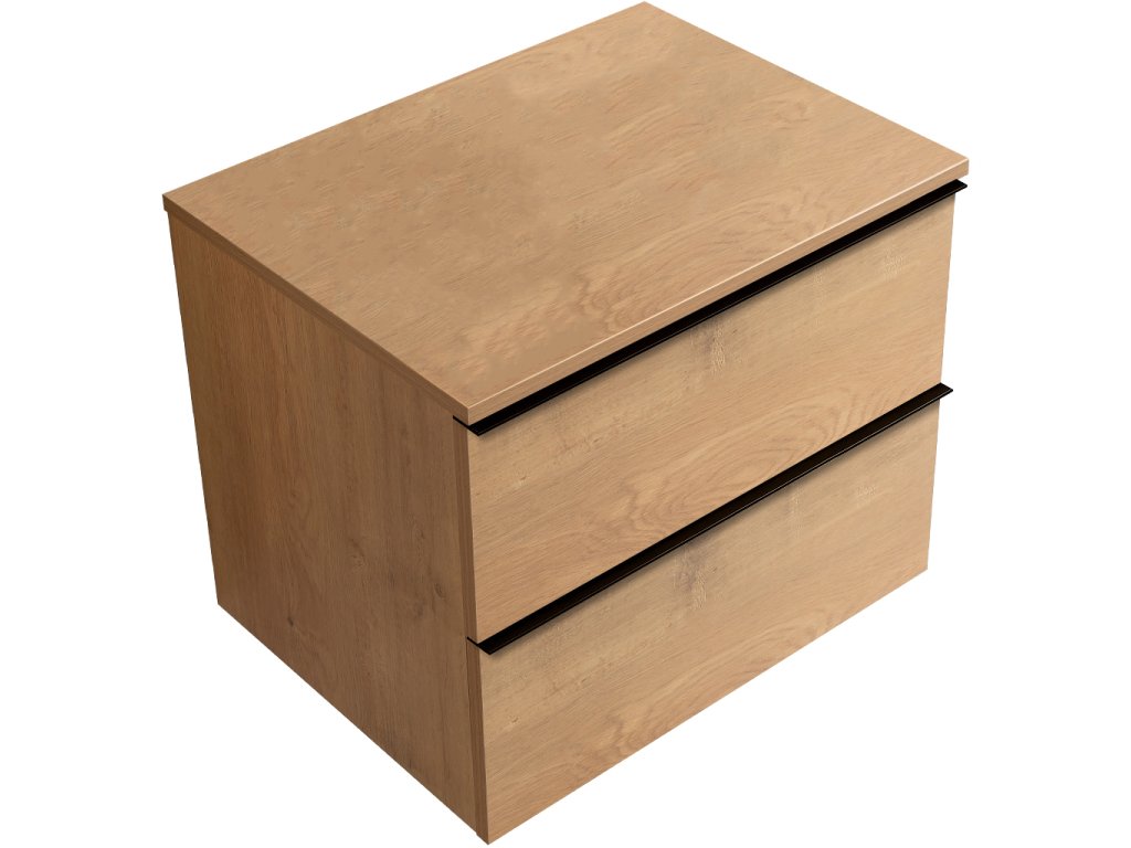 CERANO - Koupelnová skříňka pod umyvadlo s úchytkou/deskou pod umyvadlo Velora - 18 mm - dub medový, černá úchytka - 69x53x46 cm