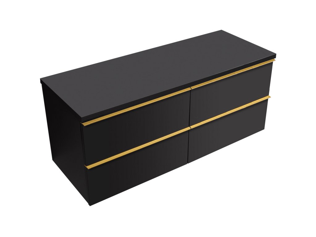 CERANO - Koupelnová skříňka pod umyvadlo s úchytkou/deskou pod umyvadlo Velora - 36 mm - černá matná, zlatá úchytka - 138x53x45,2 cm