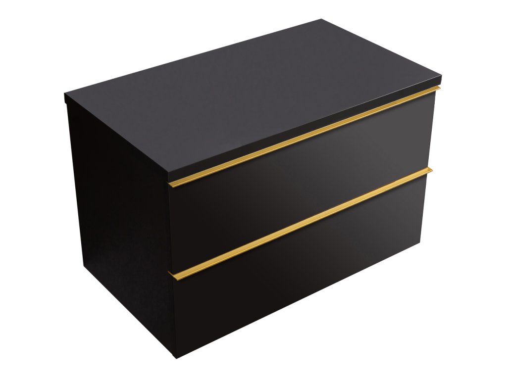 CERANO - Koupelnová skříňka pod umyvadlo s úchytkou/deskou pod umyvadlo Velora - 36 mm - černá matná, zlatá úchytka - 79x53x46 cm