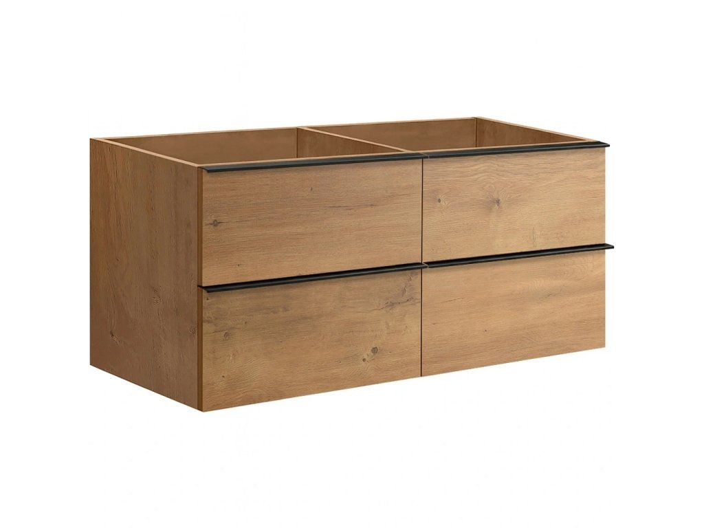 CERANO - Koupelnová skříňka pod umyvadlo s úchytkou Velora - dub medový, černá úchytka - 138x53x45,2 cm