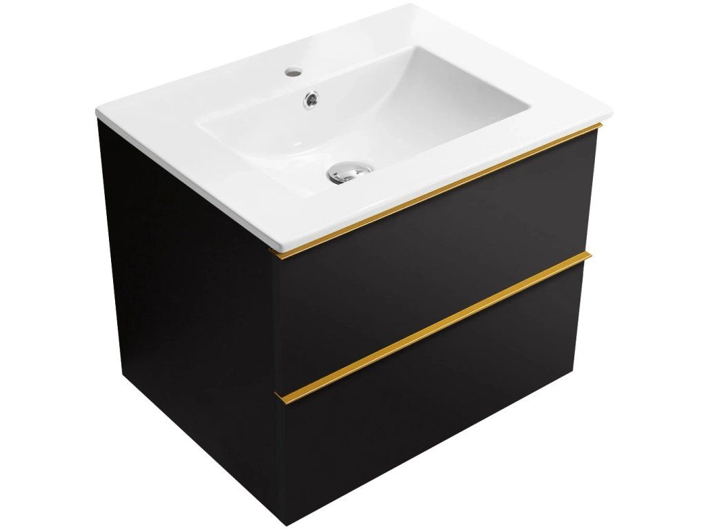 CERANO - Koupelnová skříňka pod umyvadlo s úchytkou Velora + keramické umyvadlo Todo - černá matná, zlatá úchytka - 59x53x46 cm