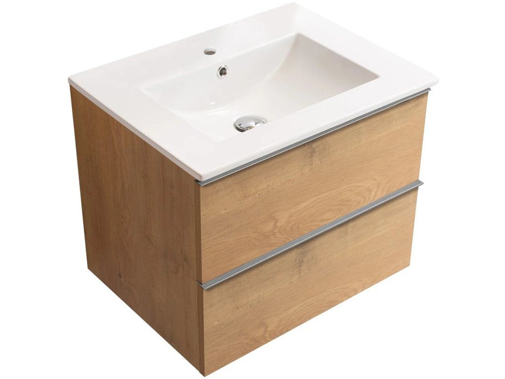 CERANO - Koupelnová skříňka pod umyvadlo s úchytkou Velora + keramické umyvadlo Todo - dub medový, chromová úchytka - 59x53x46 cm