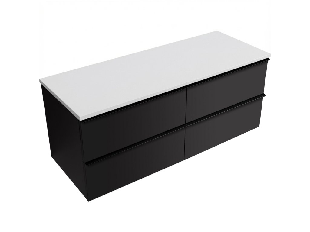 CERANO - Koupelnová skříňka pod umyvadlo Velora s úchytkou/deskou z litého mramoru Elanys - 12 mm - černá matná, černá úchytka - 138x53x45,2 cm