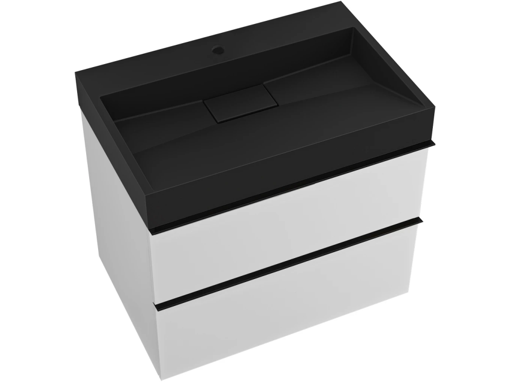 CERANO - Koupelnová skříňka Velora - bílá matná - úchytka černá + umyvadlo s otvorem pro baterii z litého mramoru Vita - černá - 70x53x46 cm