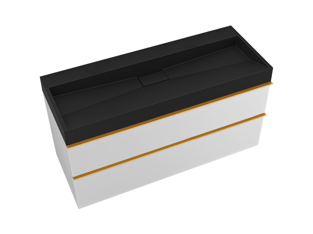 CERANO - Koupelnová skříňka Velora - bílá matná - úchytka zlatá + umyvadlo z litého mramoru Vita - černá - 100x53x46 cm