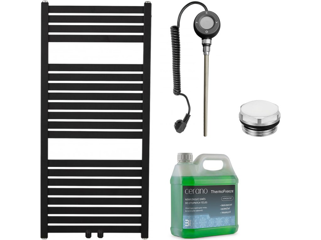 CERANO - Koupelnový elektrický radiátorový set Luigino - WIFI - 300W - černá matná - 970x450 mm