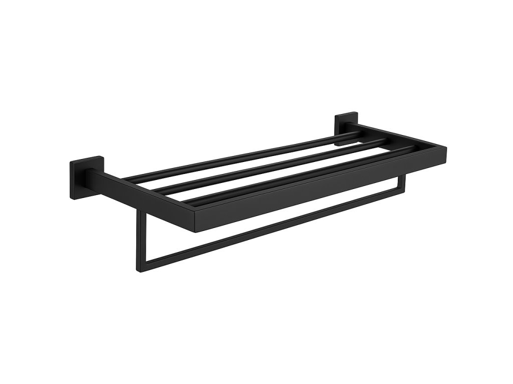 CERANO - Nástěnná polička s držákem na ručníky Alto - černá matná - 60 cm