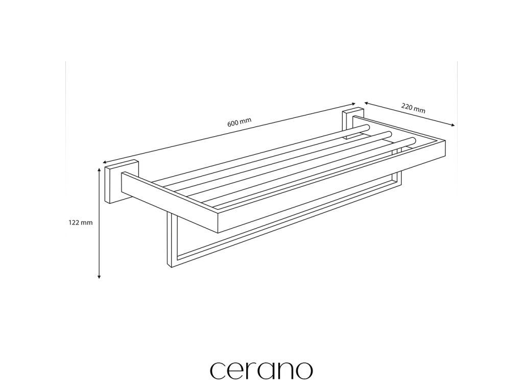 Horní strana slouží k umístění ručníků, ale praktické "šprušle" navíc nabízejí zavěšení ručníků pro potřebu sušení. Tato police je pevně upevněna ke stěně pomocí dvou malých montážních vrutů s hmoždinkami. Tento způsob montáže zajišťuje vyšší pevnost a nosnost celé police. Montážní sada je součástí balení.