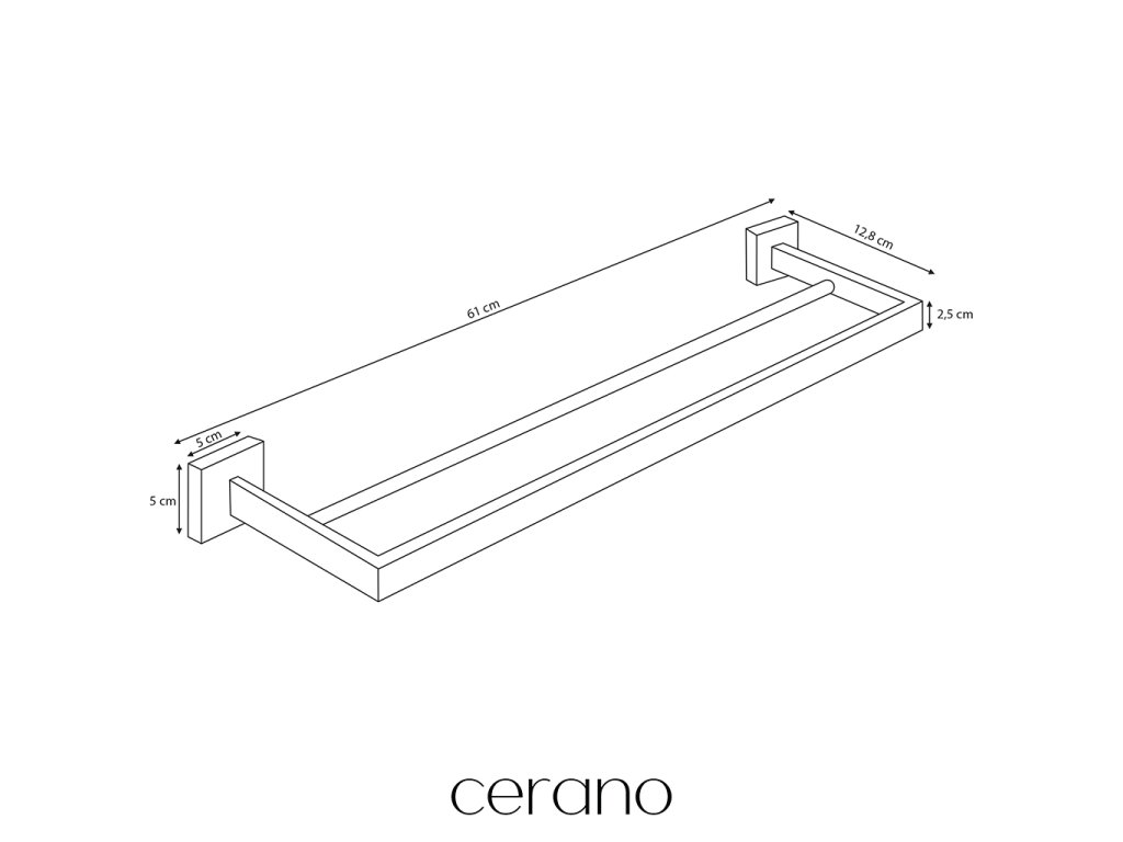 CERANO - Nástěnný držák na ručníky Alto - černá matná - 61 cm