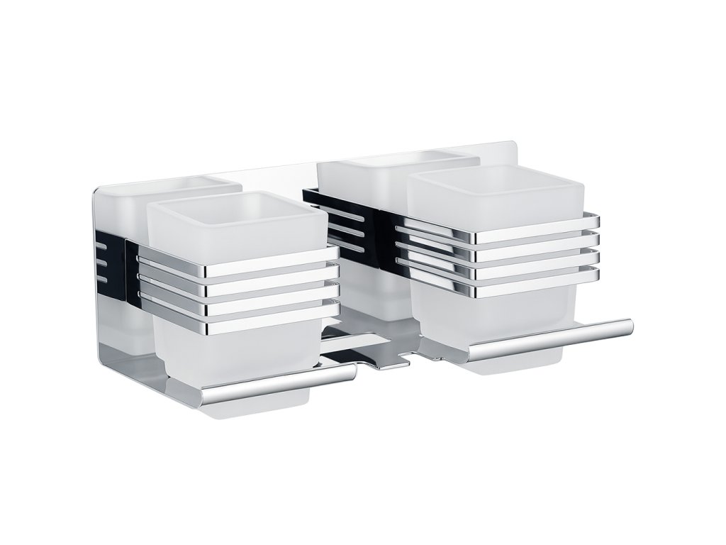 Hranatý tvar držáku perfektně ladí se sprchovými zástěnami Cerano se stejnou povrchovou úpravou. Dvě hranaté sklenice, které jsou součástí balení, mají povrchový design mléčného skla, a proto budou ideálním doplňkem k zástěnám Onyx se stejným sklem a profily s černou matnou povrchovou úpravou. Sklenice jsou odnímatelné, takže jejich údržba je velmi snadná.