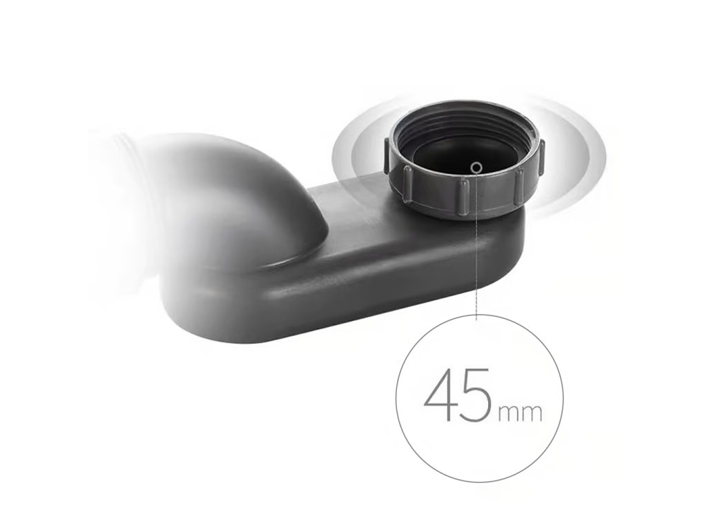 Pružná trubka, kterou lze natáhnout, umožňuje snadné přizpůsobení tvaru sifonu, což usnadňuje jeho instalaci. Díky tomu se produkt přizpůsobí různým sanitárním konfiguracím a zajišťuje efektivní provoz celého systému.