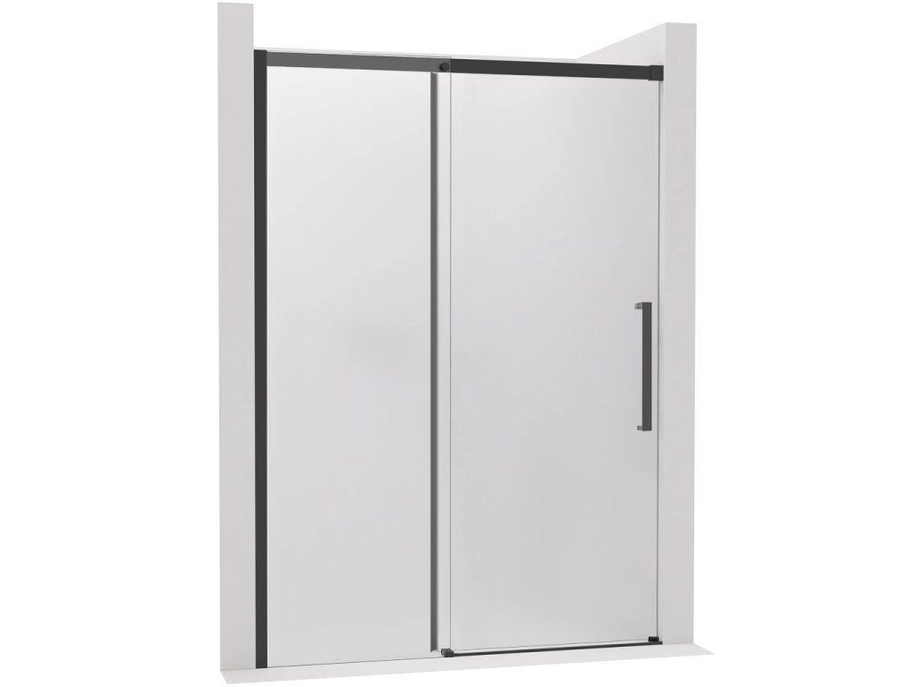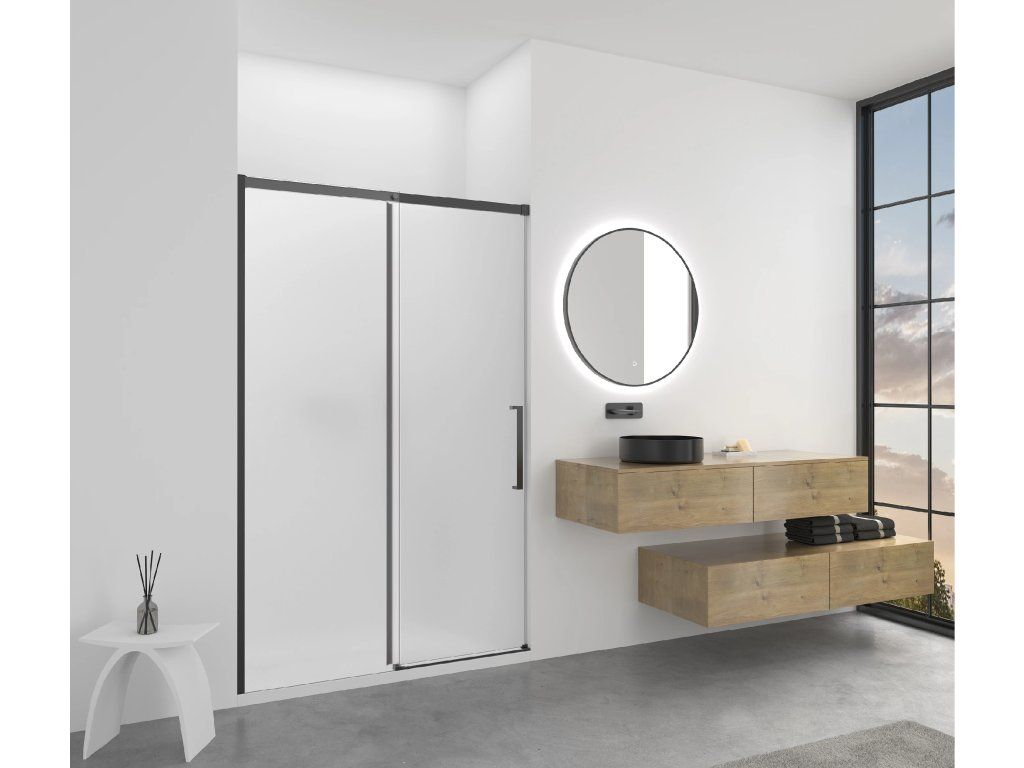 CERANO - Sprchové posuvné dveře Lantono - levá - 8 mm - Soft-Close - černá matná, mléčné sklo - 100x195 cm - ROZBALENO